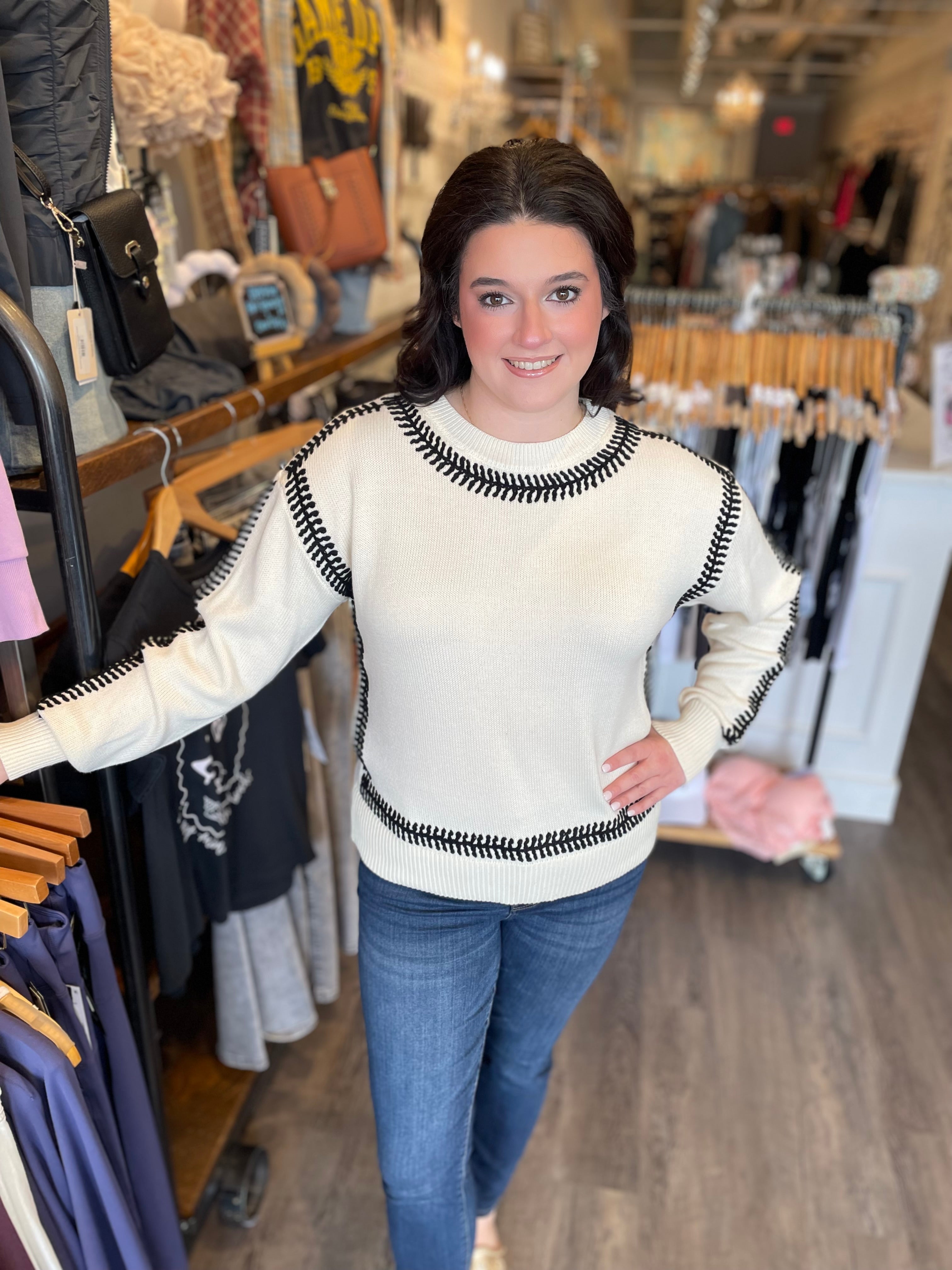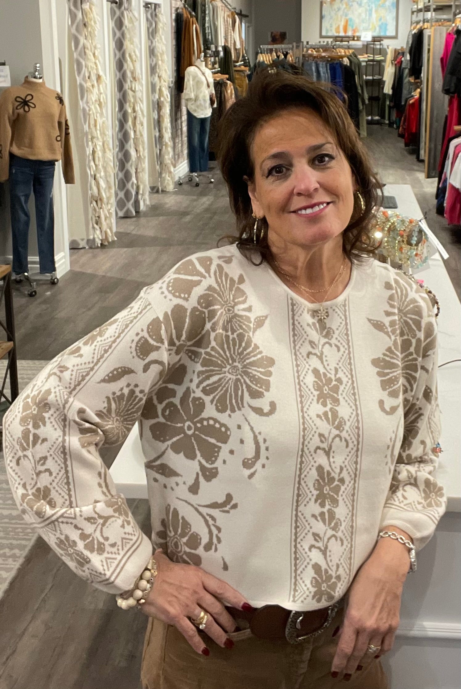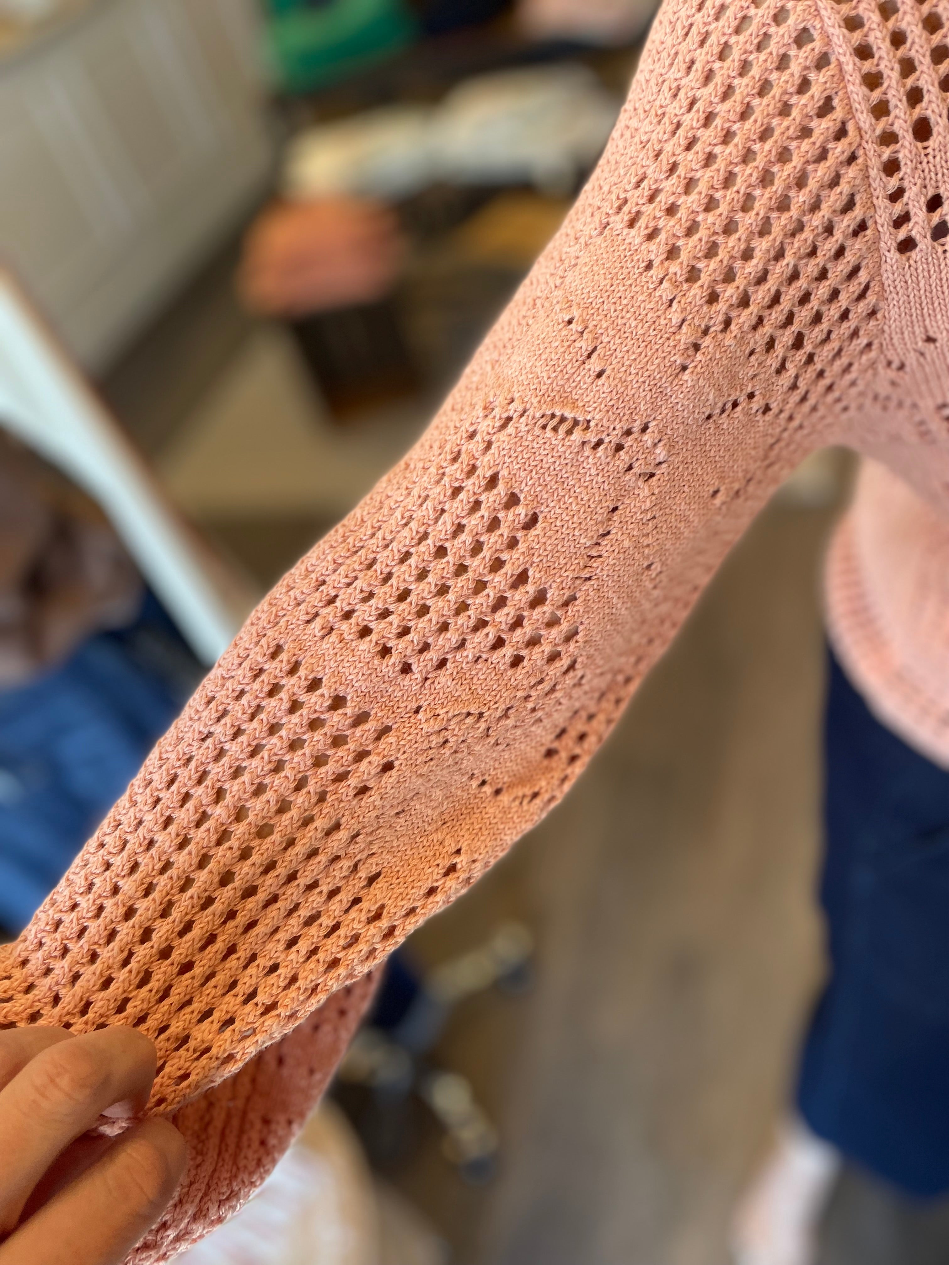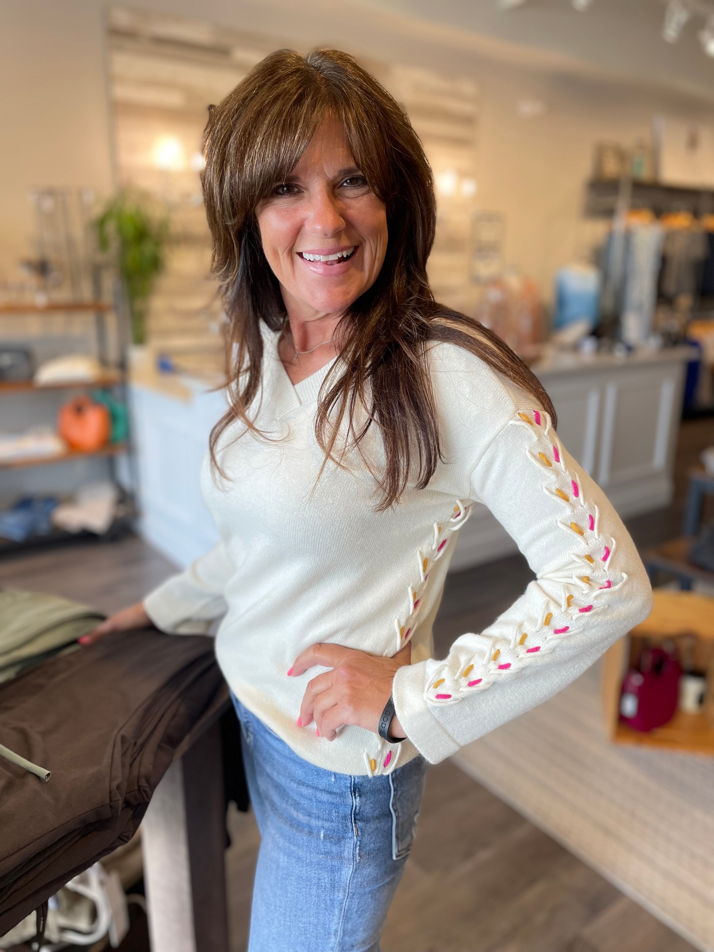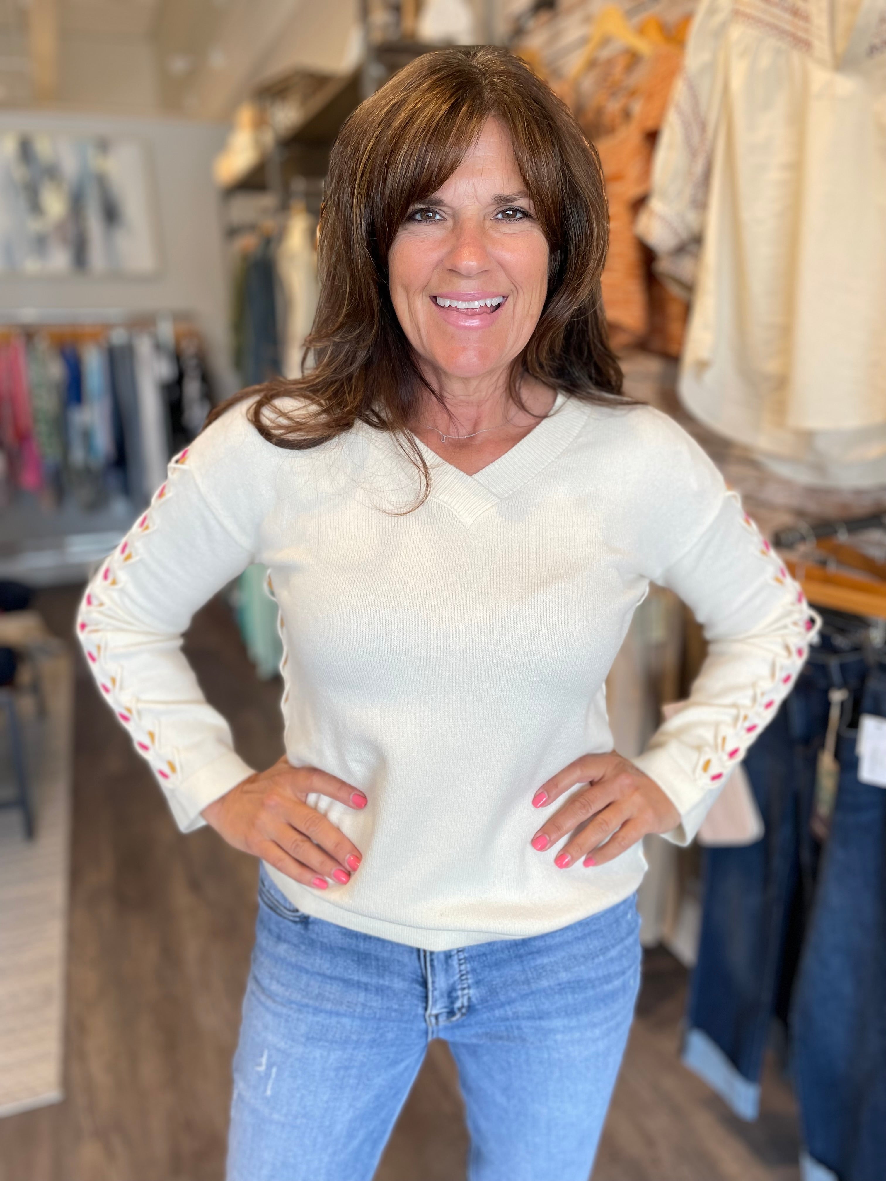 Woven Shoulder V Neck Sweater w/ Bell Sleeves - HQ