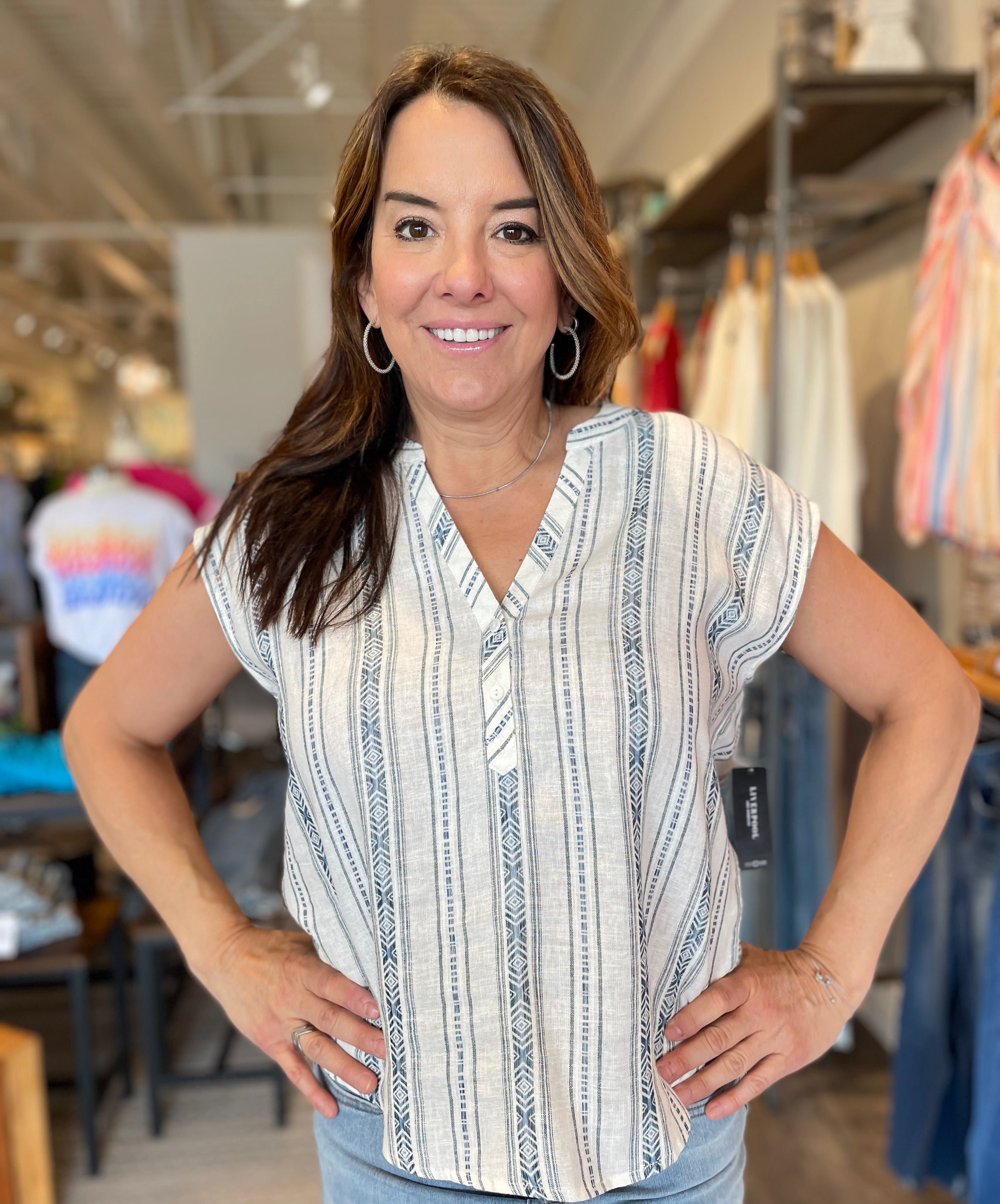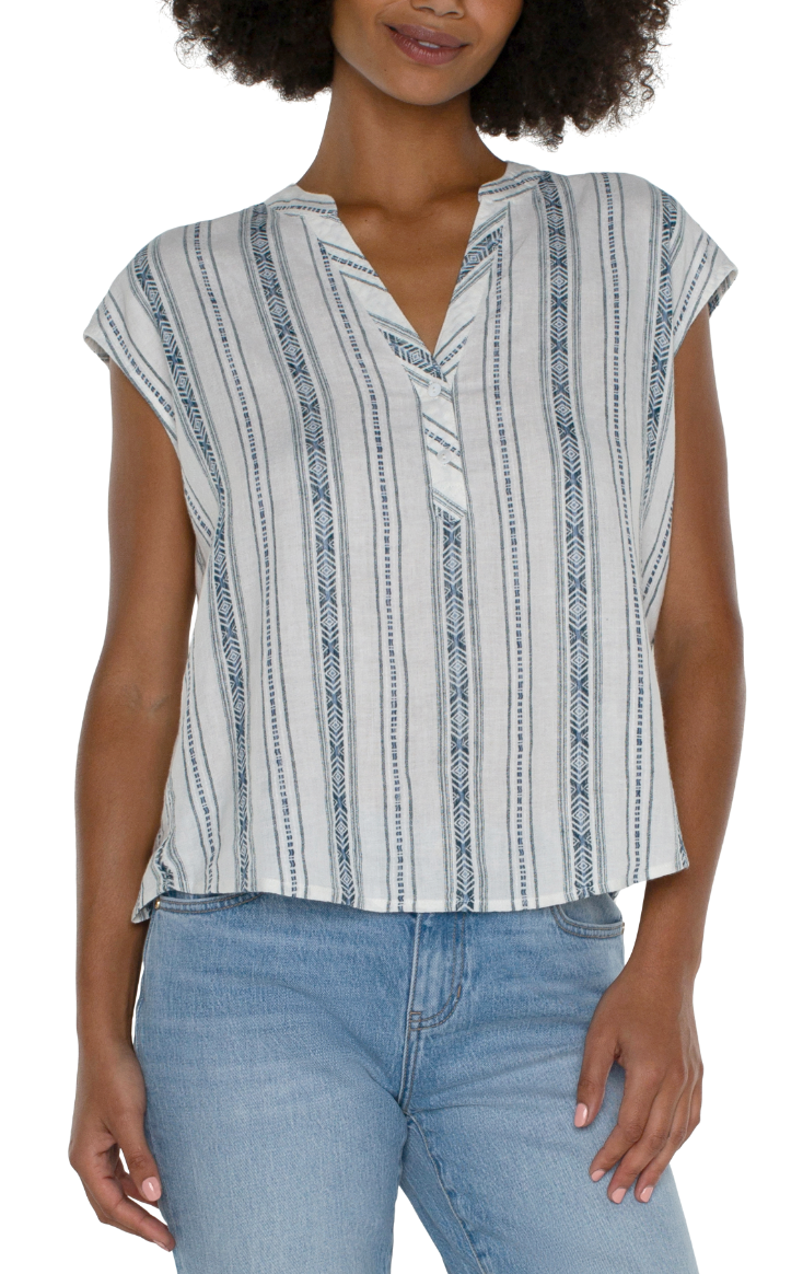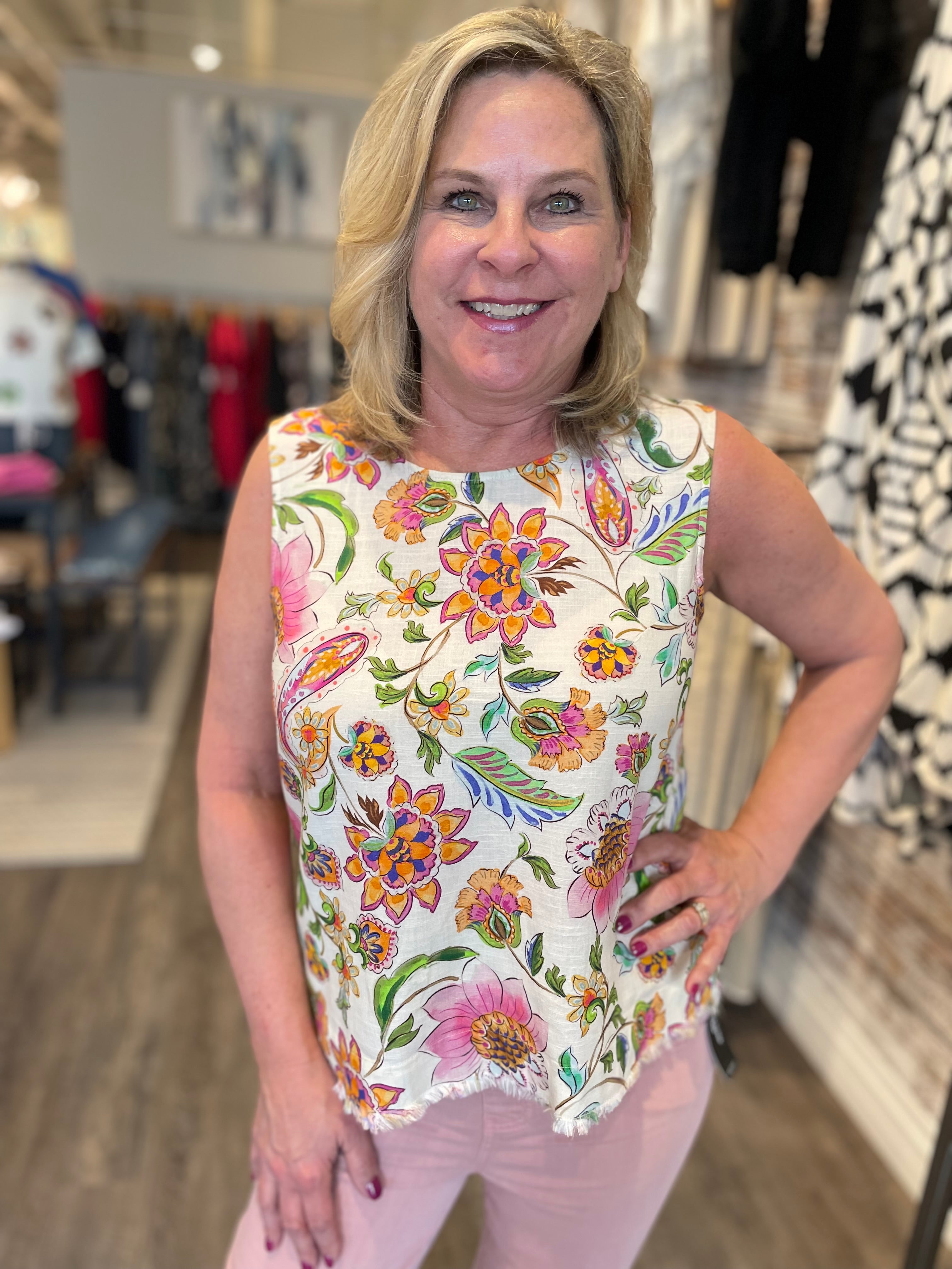 Woven Top w/ All Over Rhinestones and Knit Tank