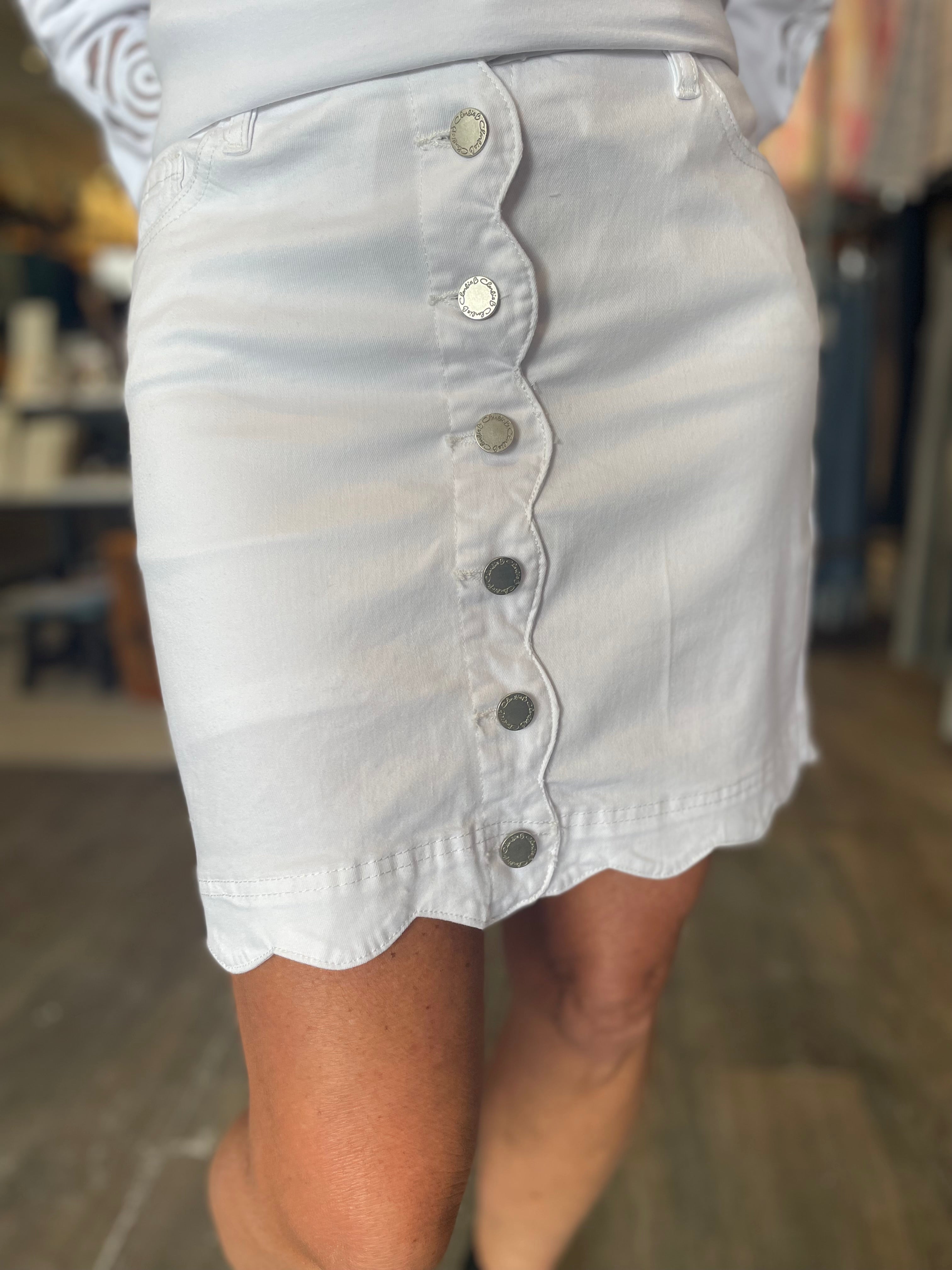 Scalloped Hem Button Skort