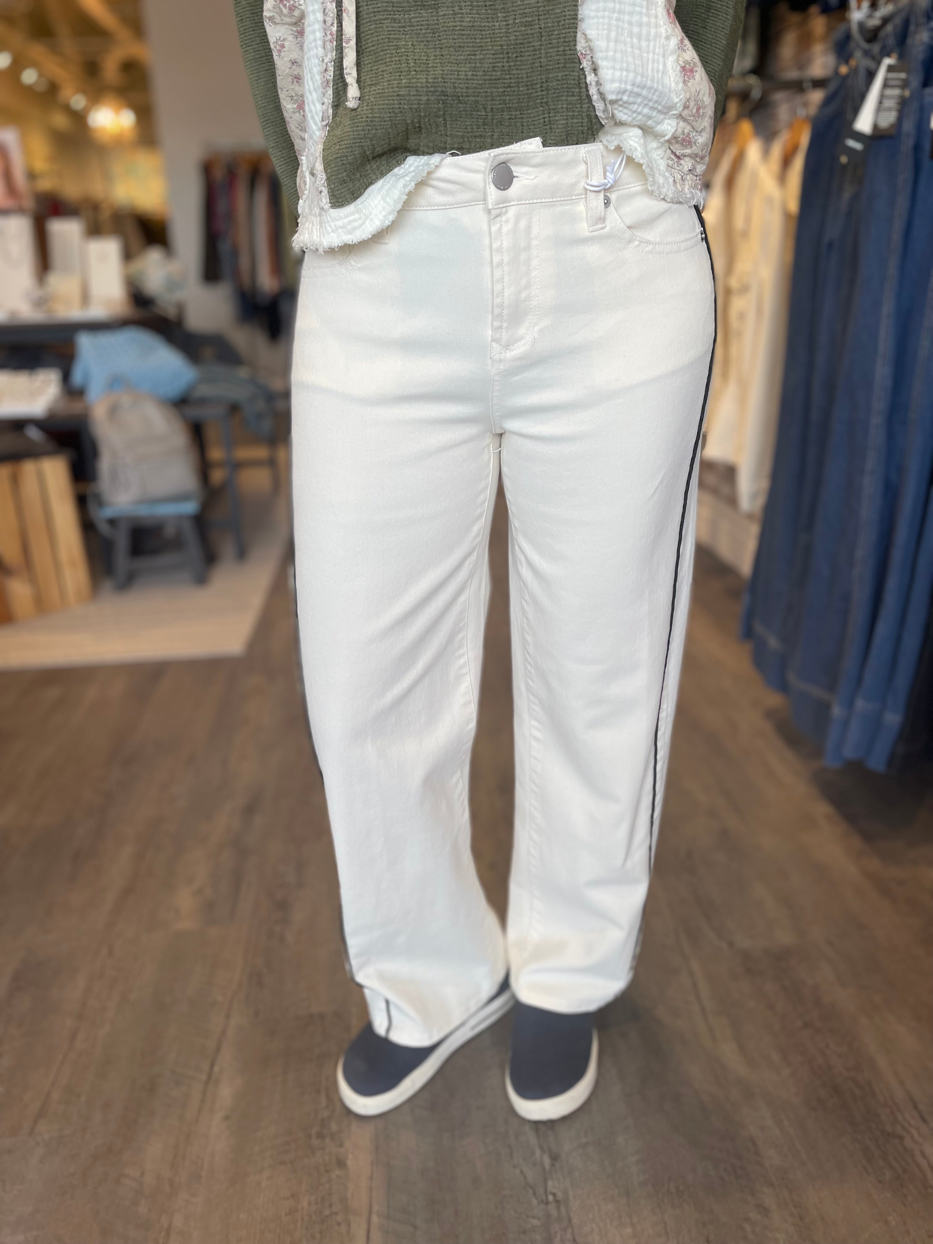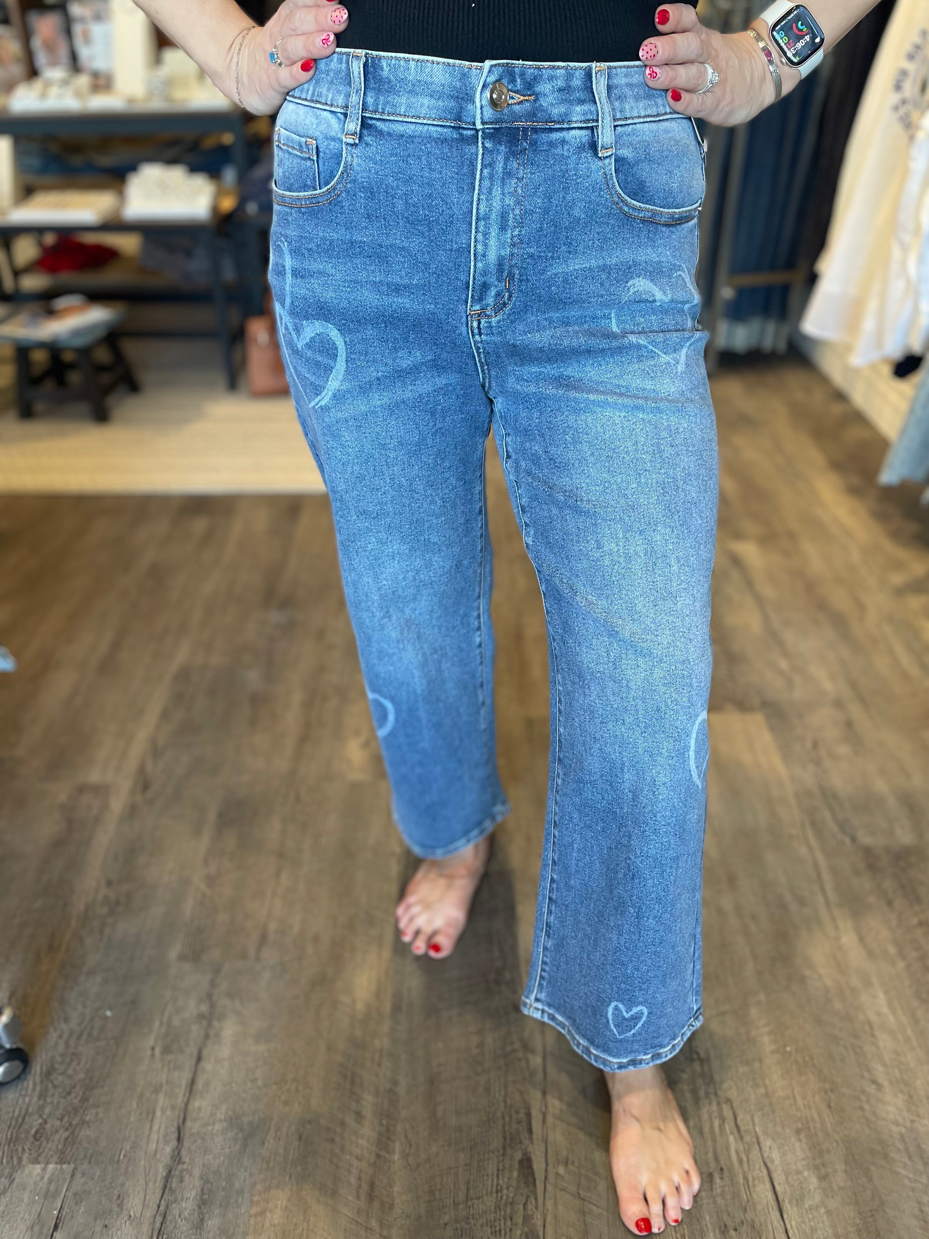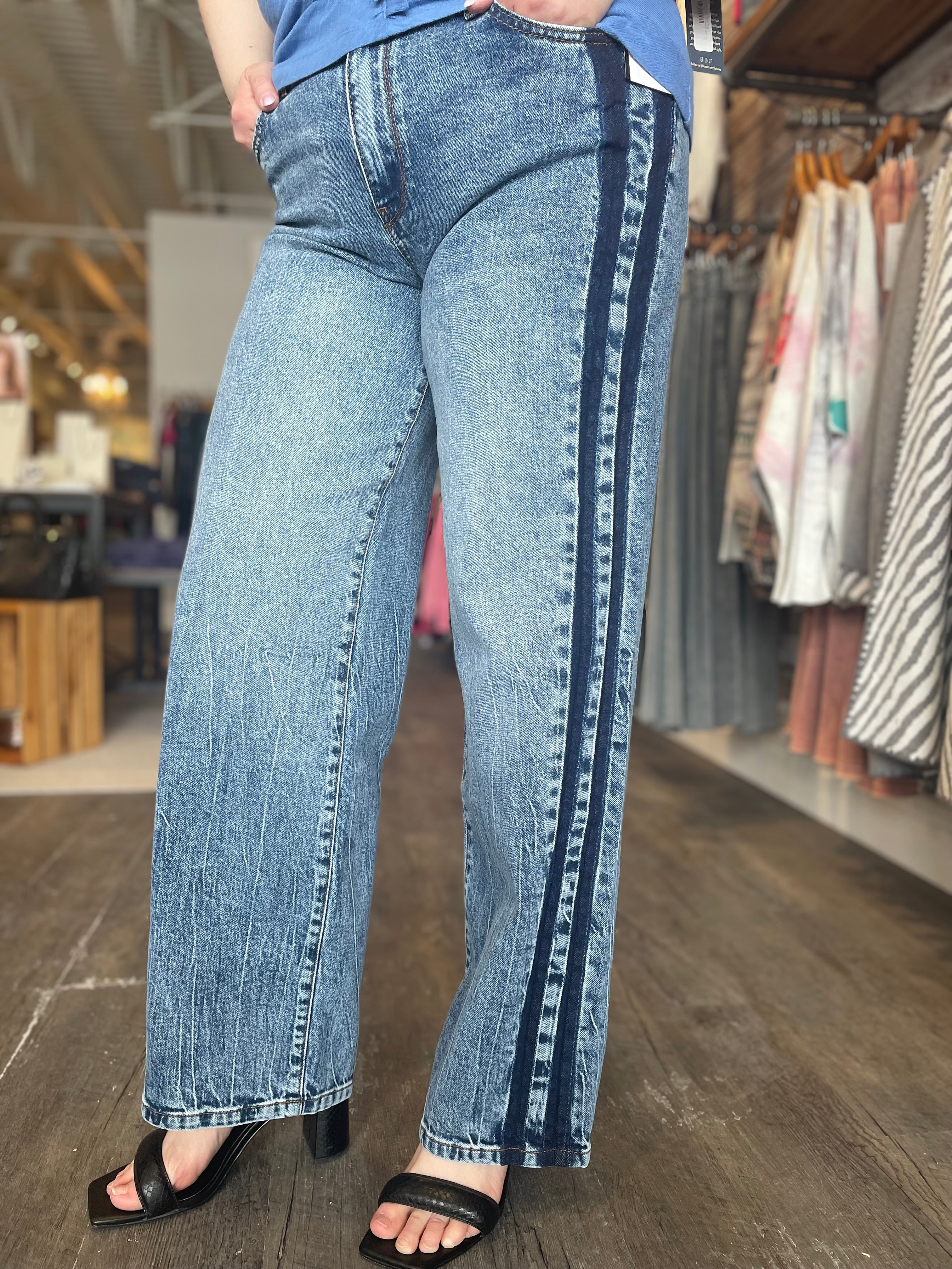 Stride Crop Wide Leg W/Embroidered Side Denim