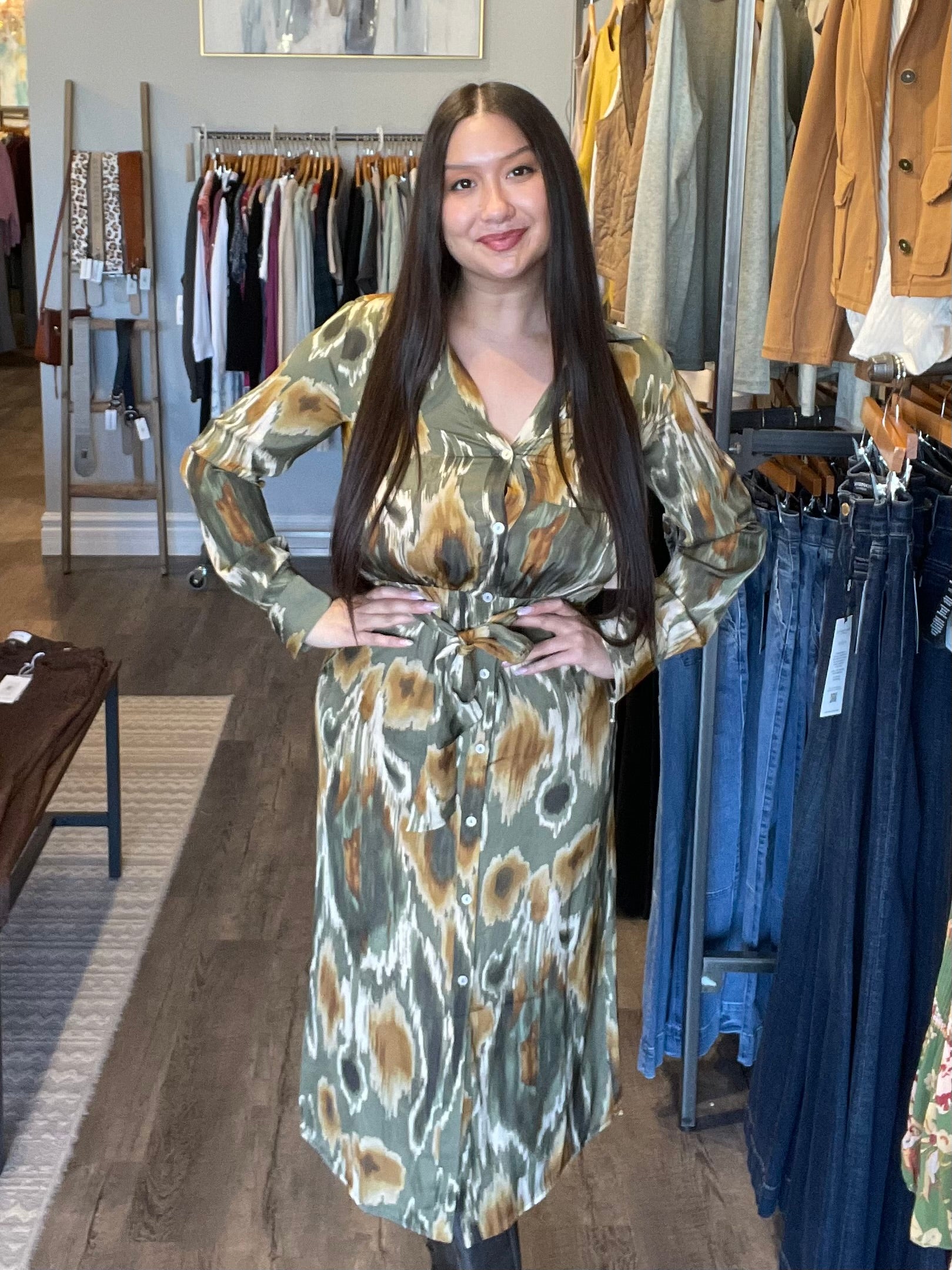 L/S Belted Midi Dress