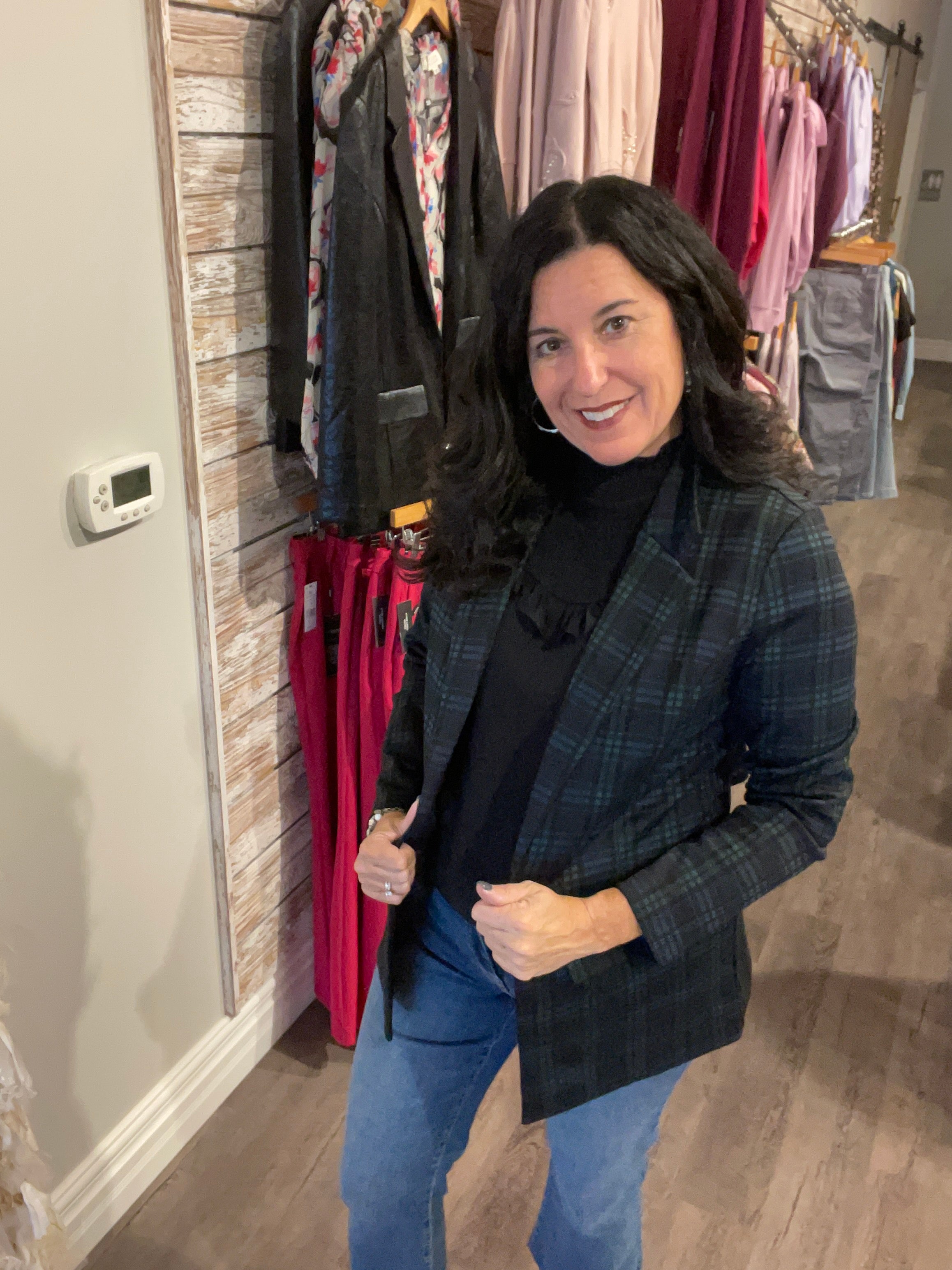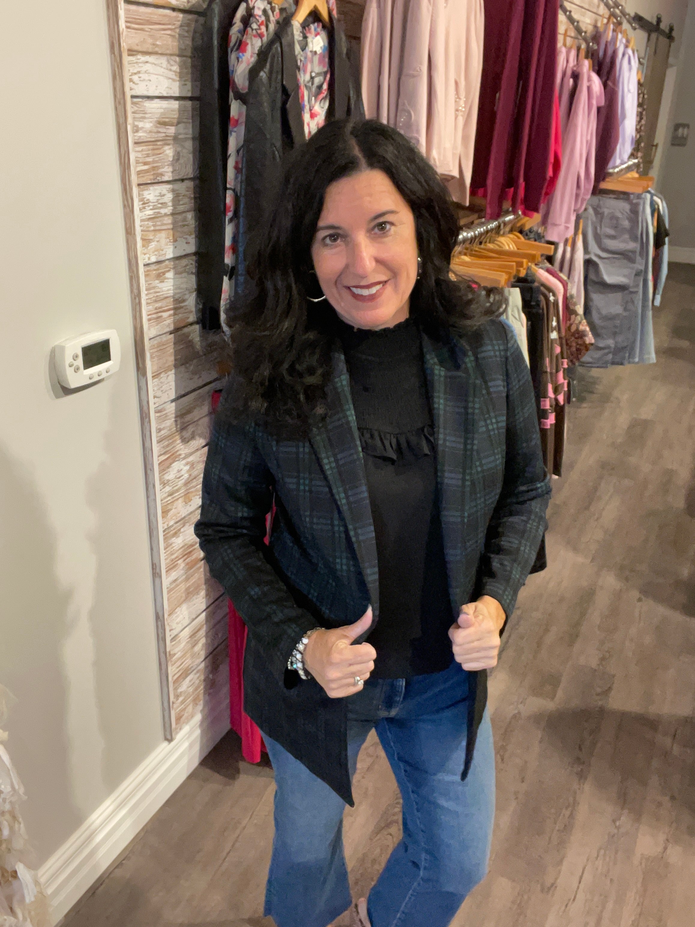 - Amazing black watch plaid boyfriend blazer - fashionable piece!