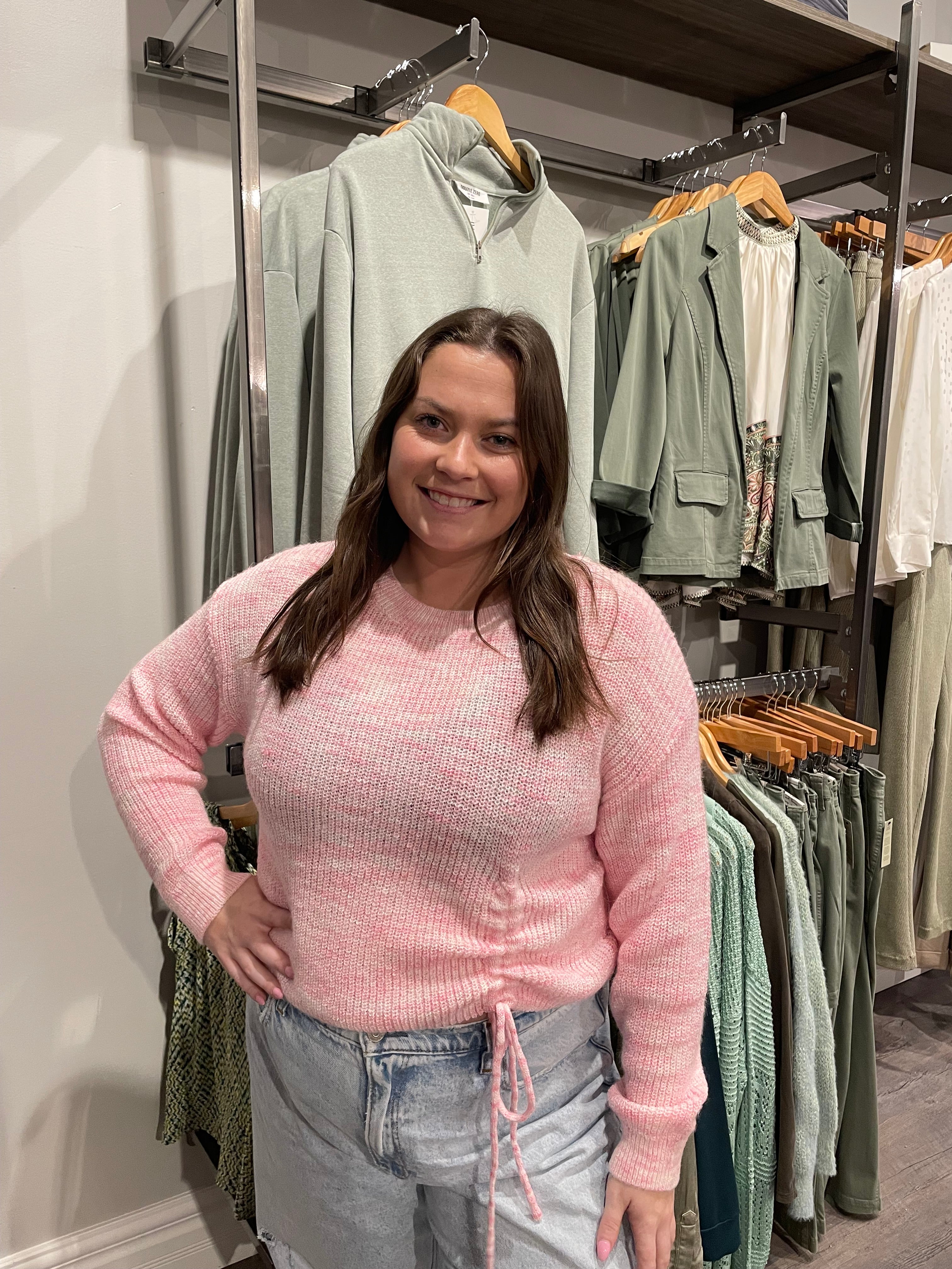 V Neck Draw String Sweater