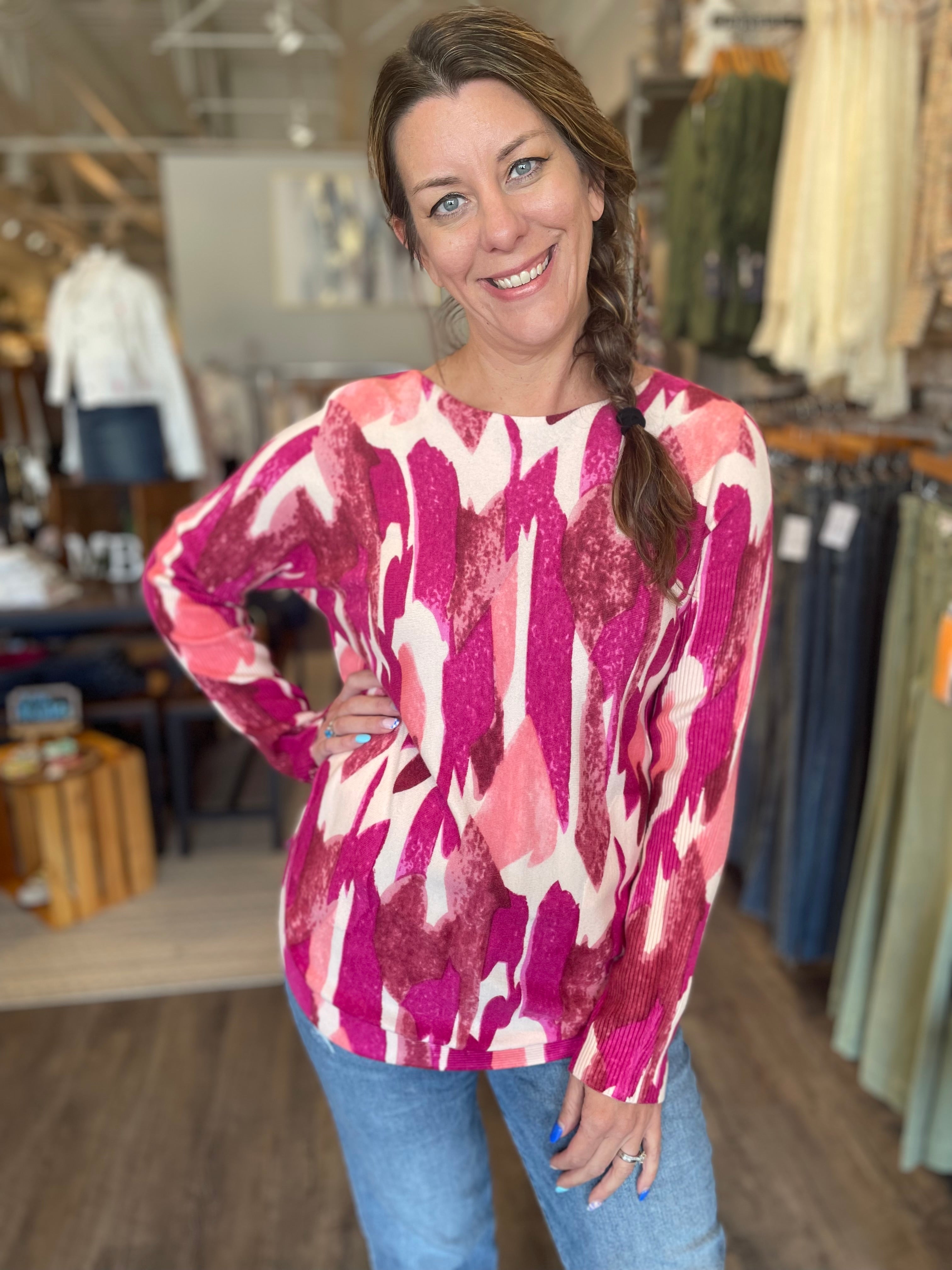 Printed Round Hem Sweater