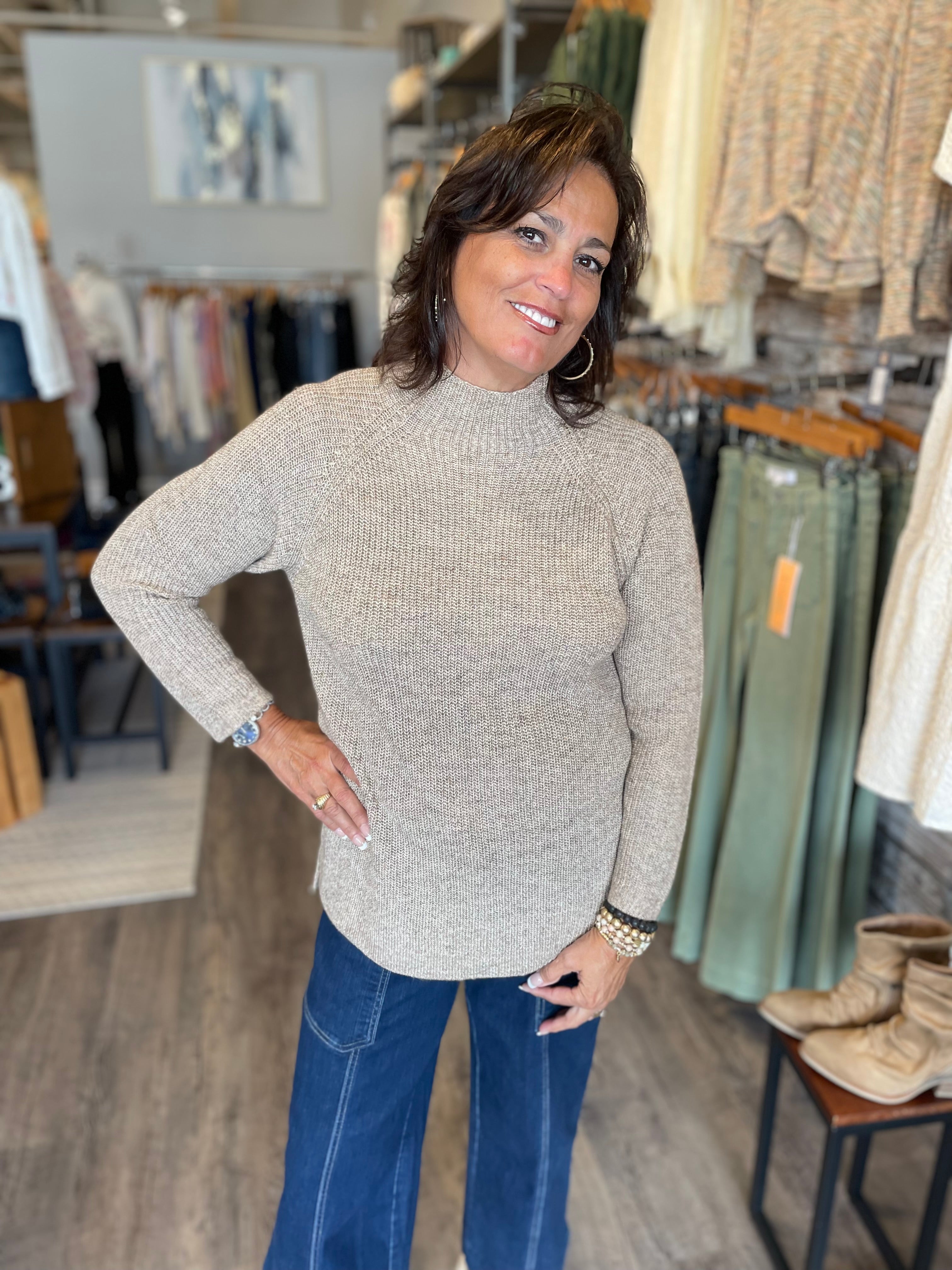 MB Mock Neck Tunic Sweater w/ Side Slits - HQ