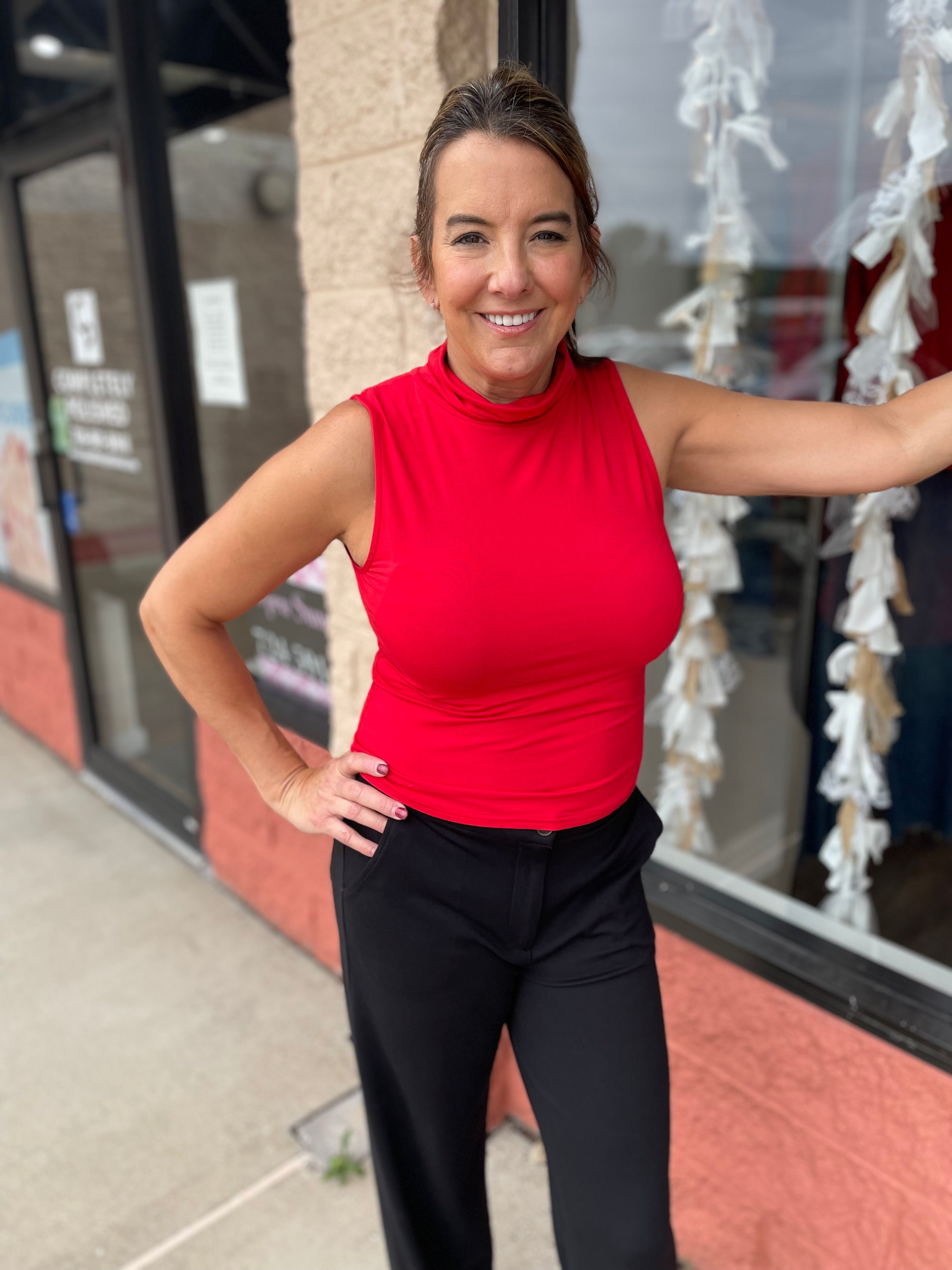 Jersey Sleeveless Roll Neck Top