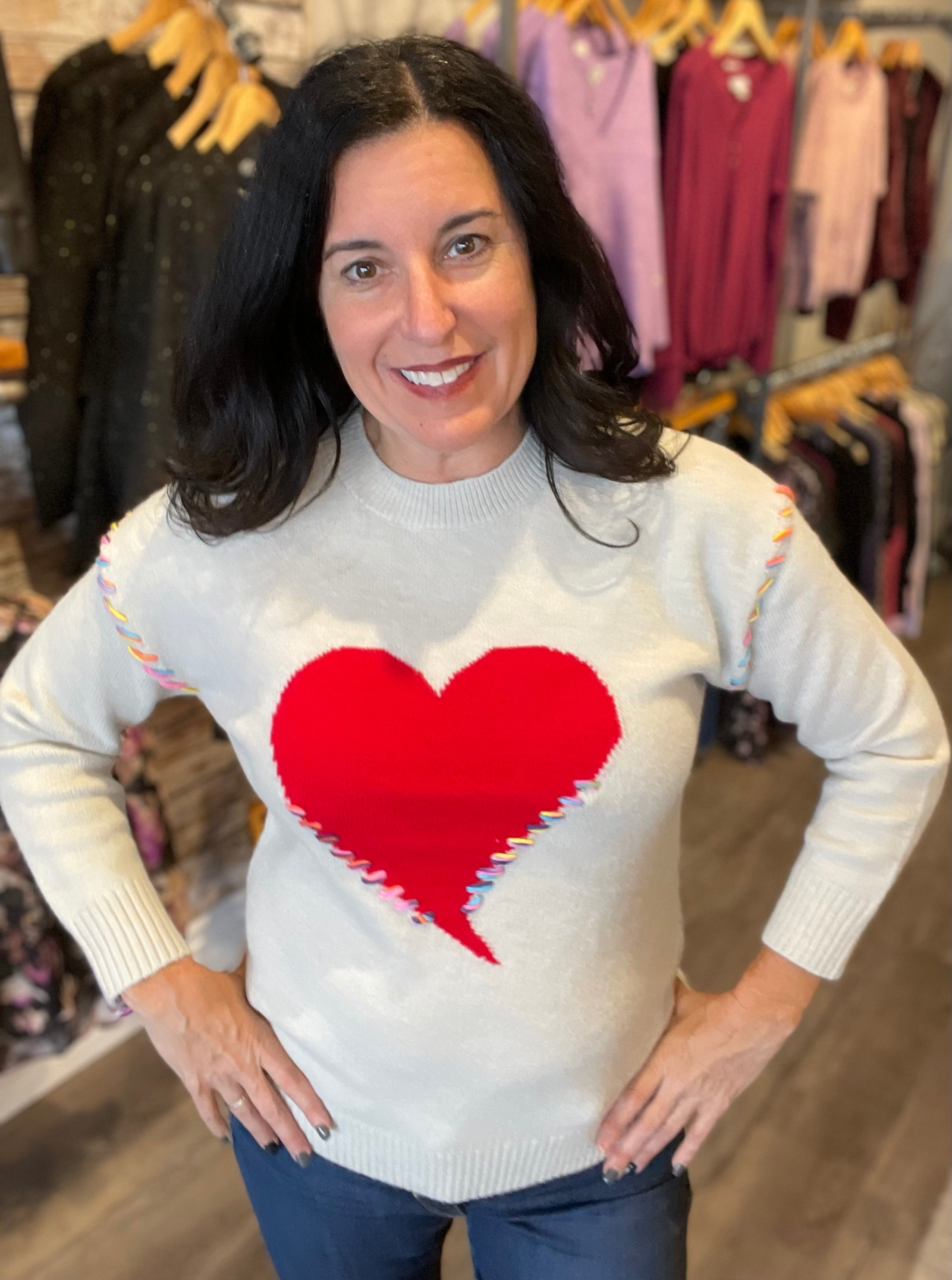 Big Heart Neon Whipstitch Sweater