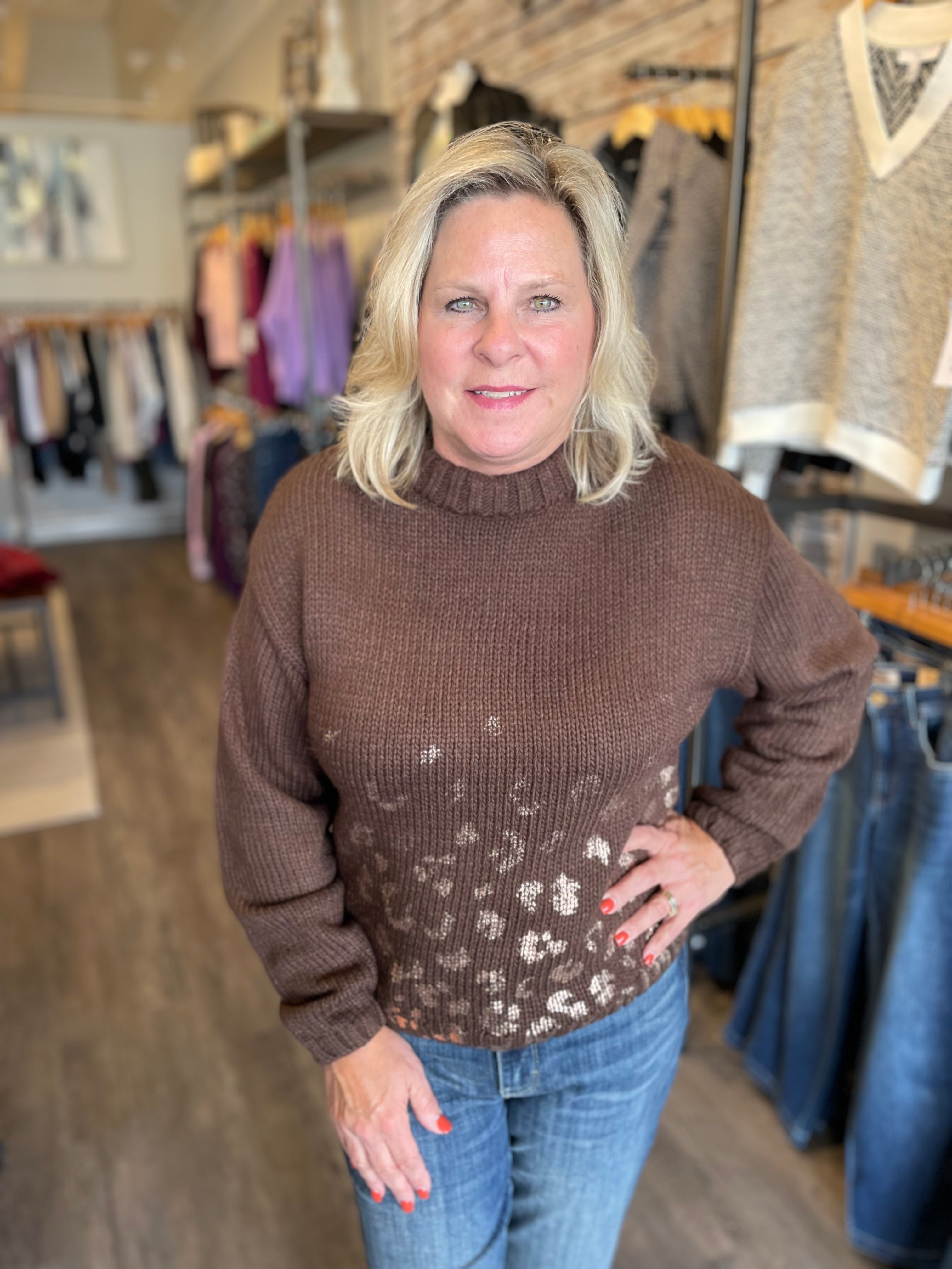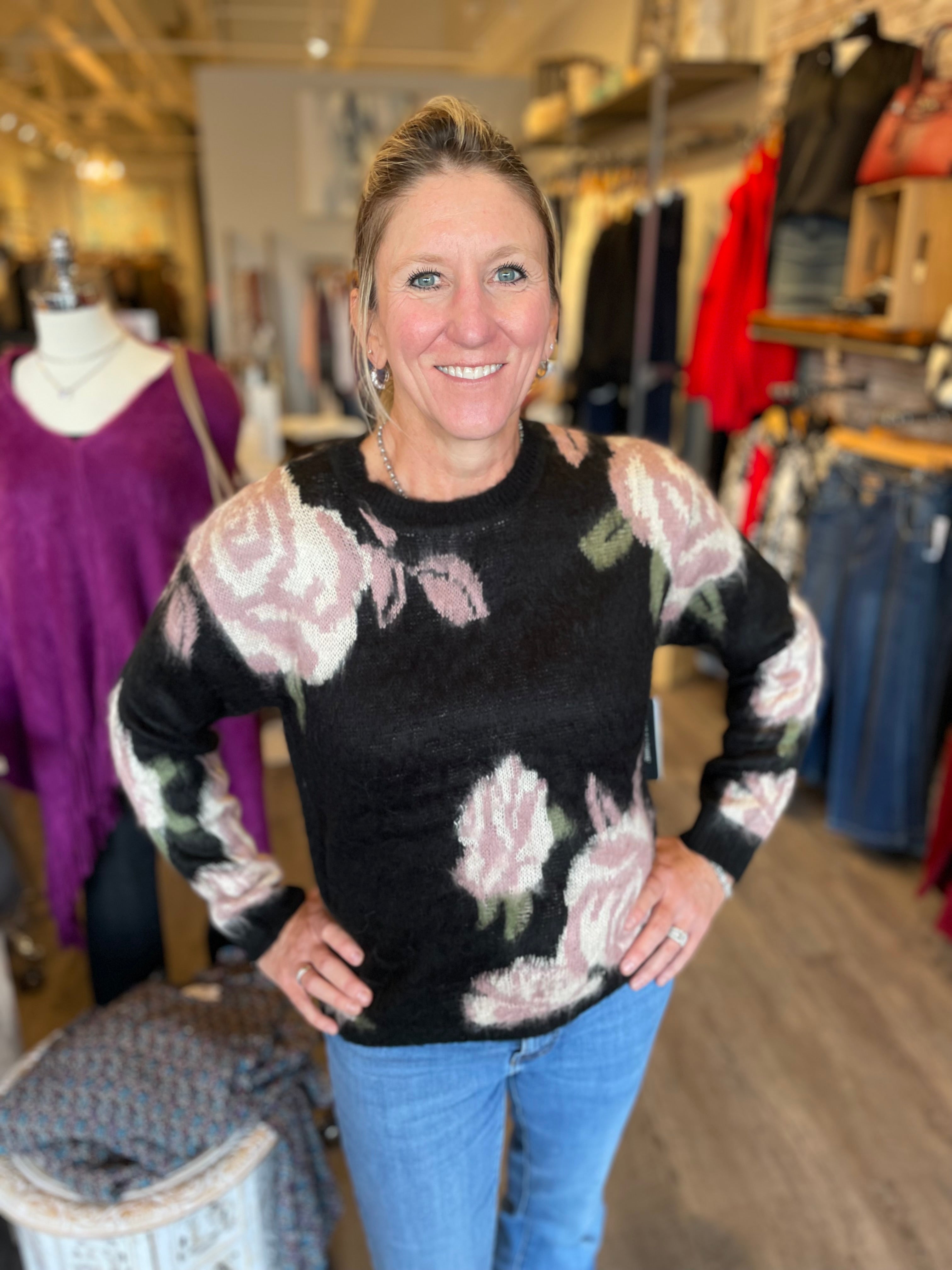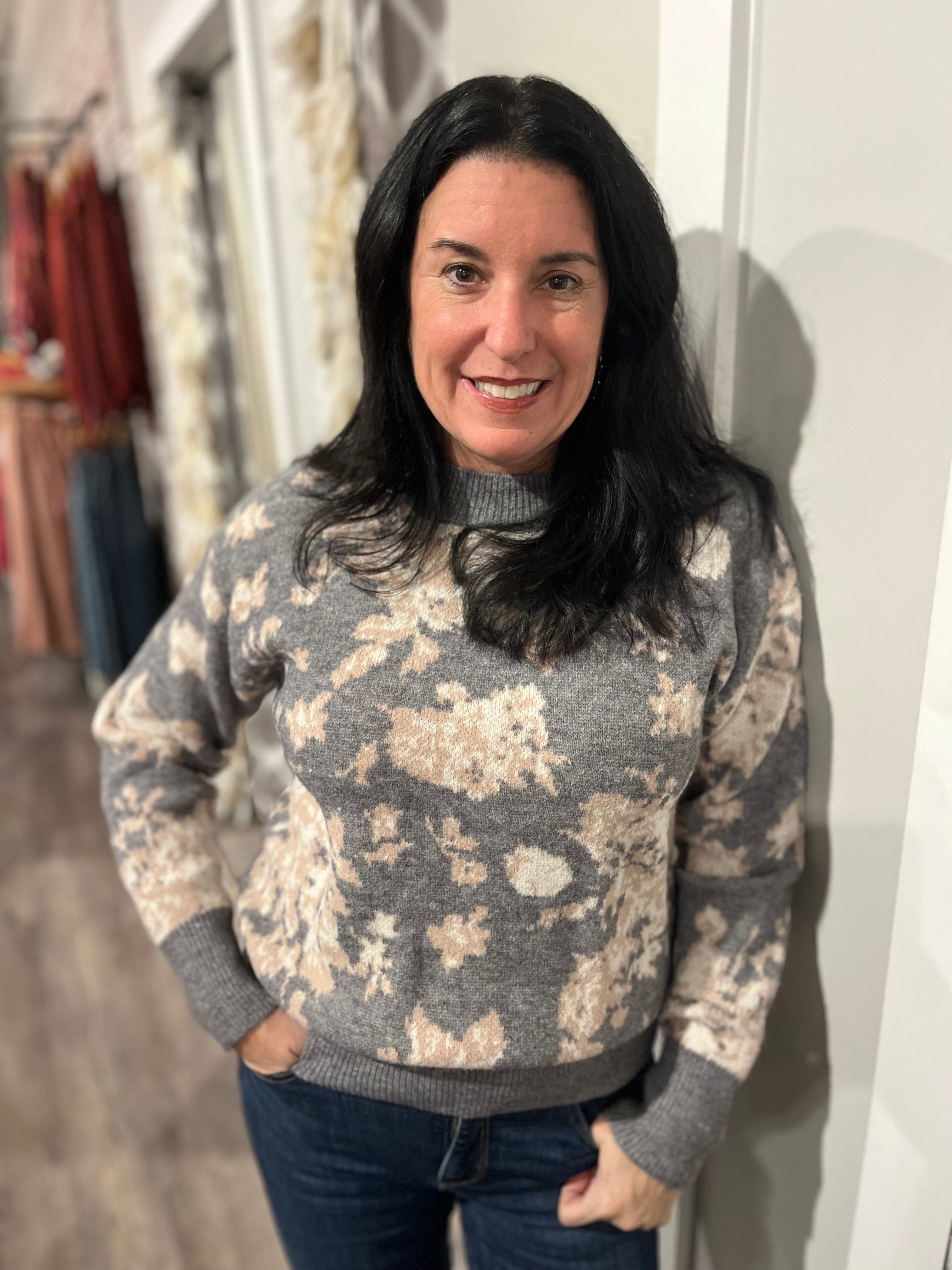 L/S Crew Neck Floral Sweater