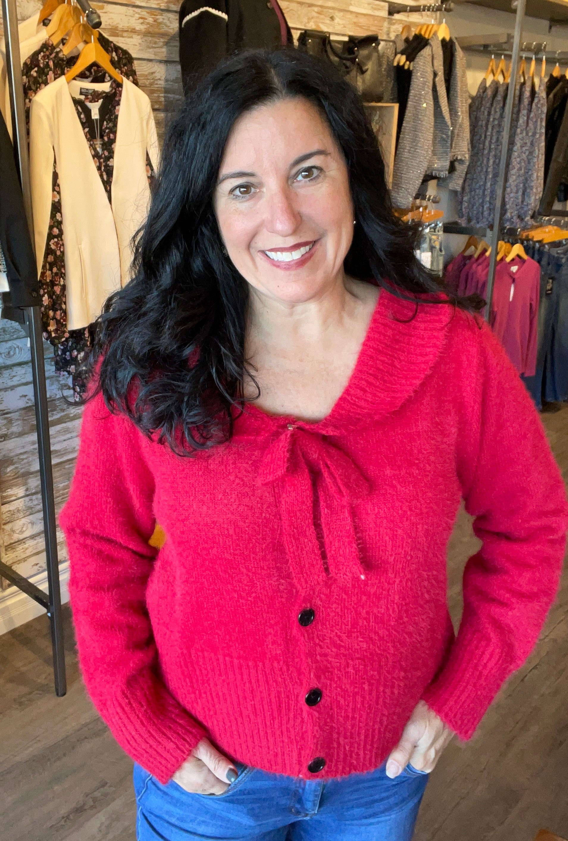 Boat Neck Cardigan w/Bow Detail