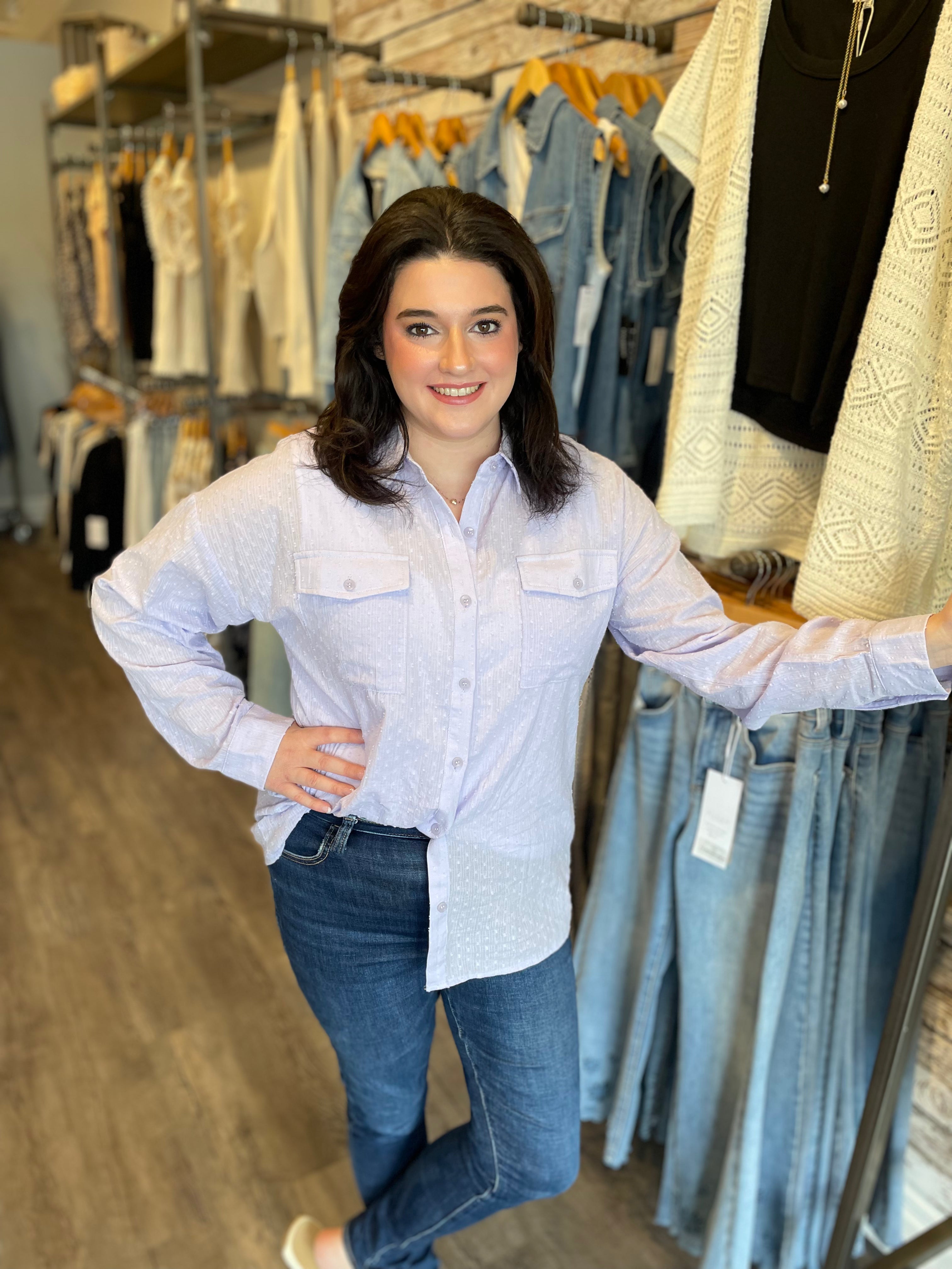 -Pale lavender button-up top
