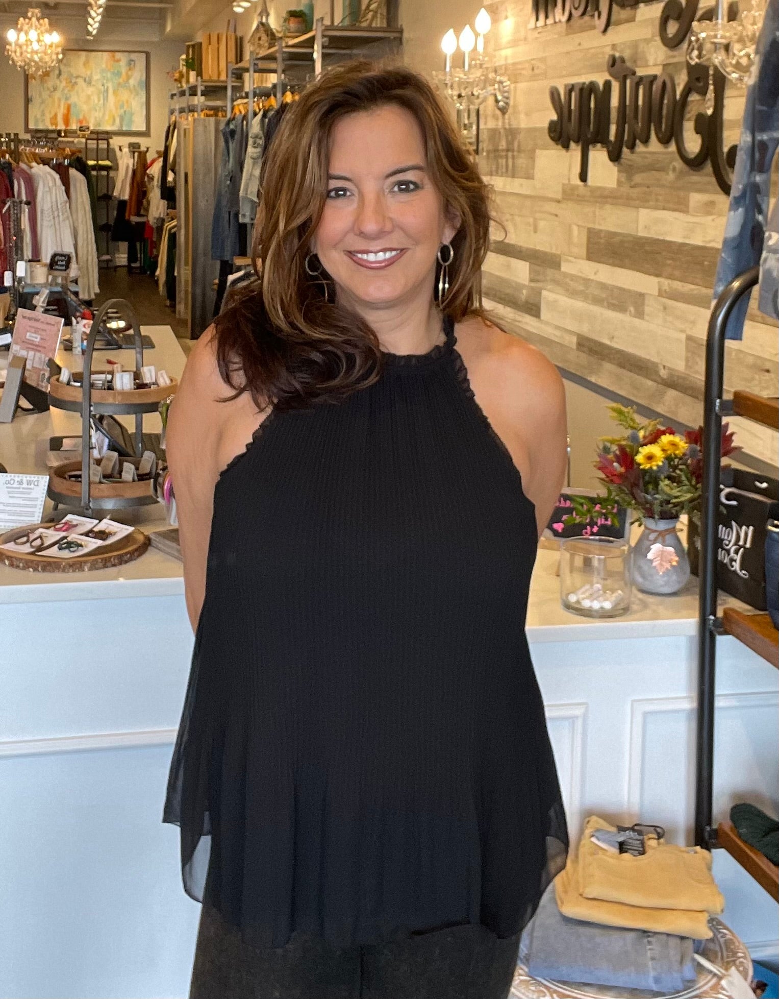 Sleeveless Pleated Halter Top W/ Ruffle - HQ