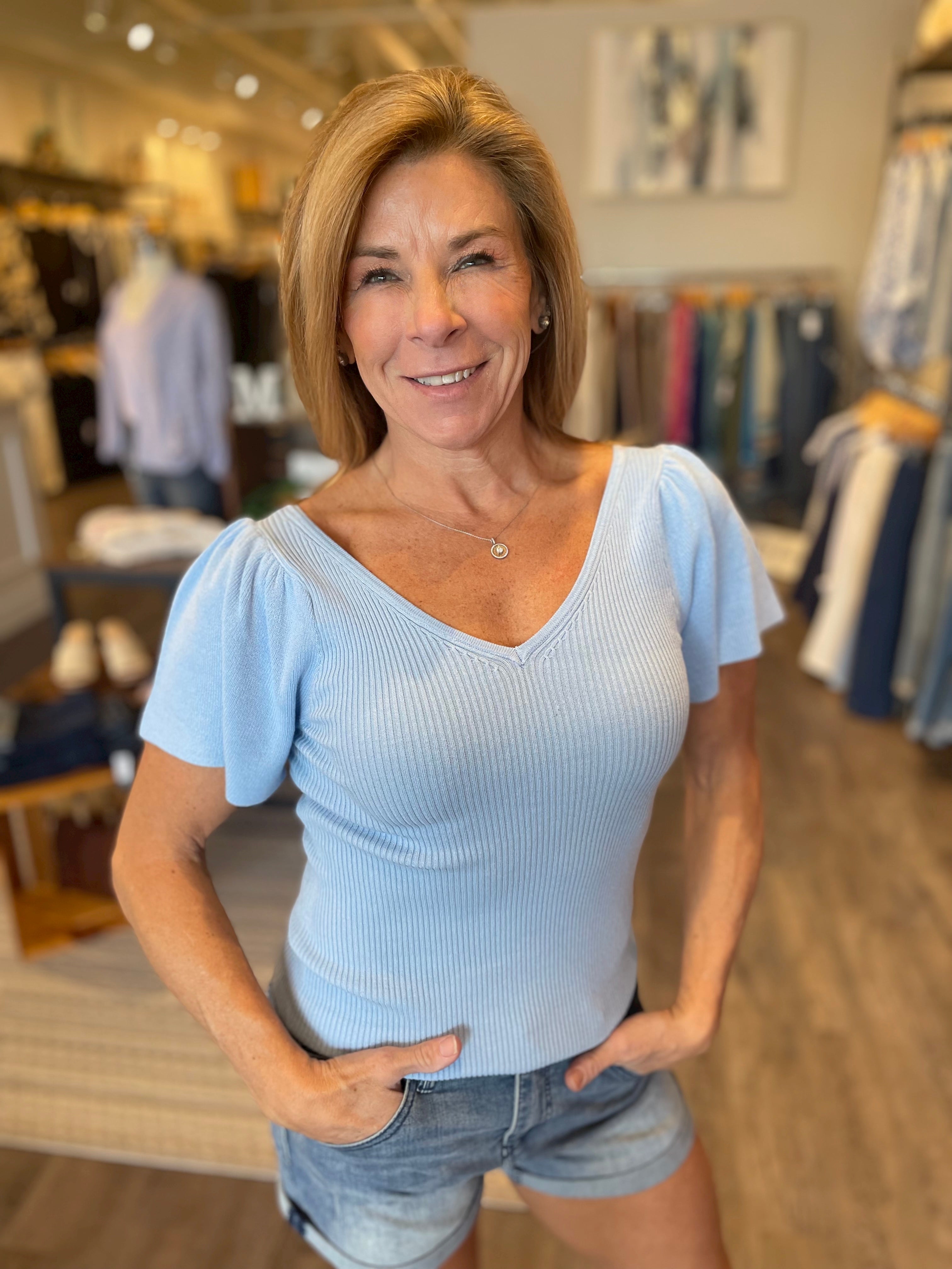 Double V Neck Flutter SLV Top