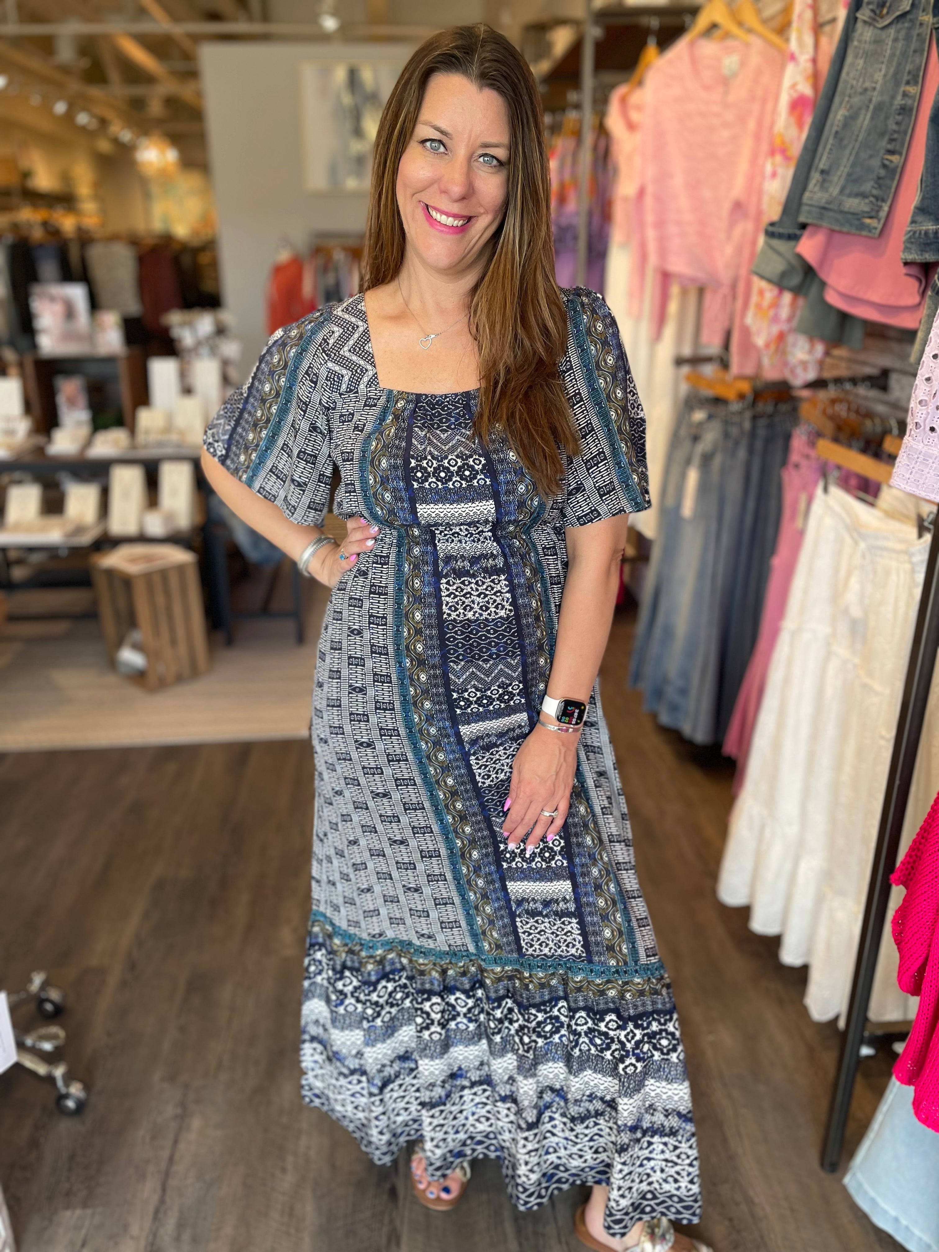 Elbow Square Neck Woven Dress