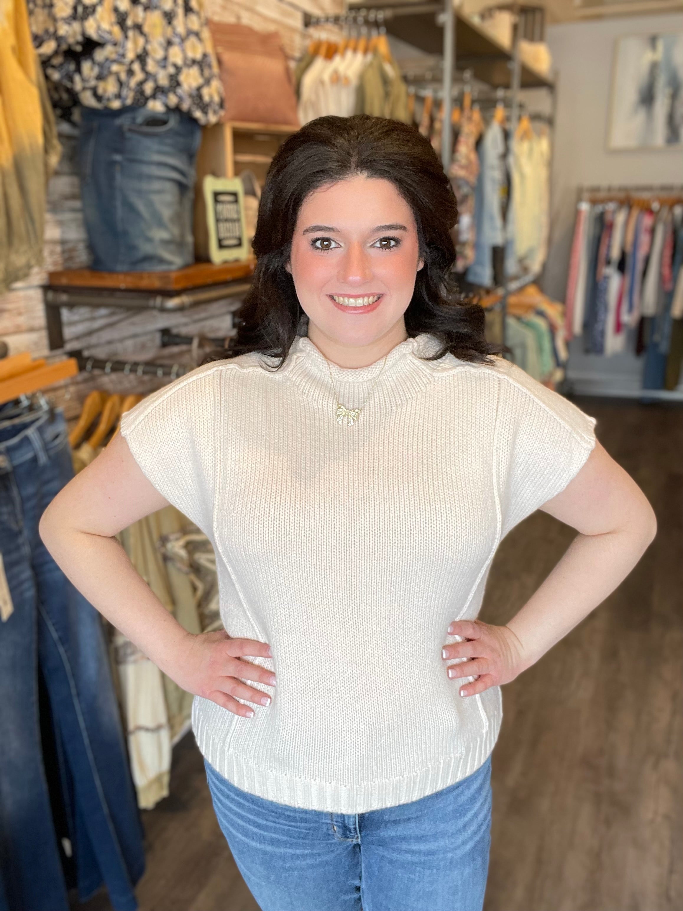 Crew Neck Top W/Cap SLV