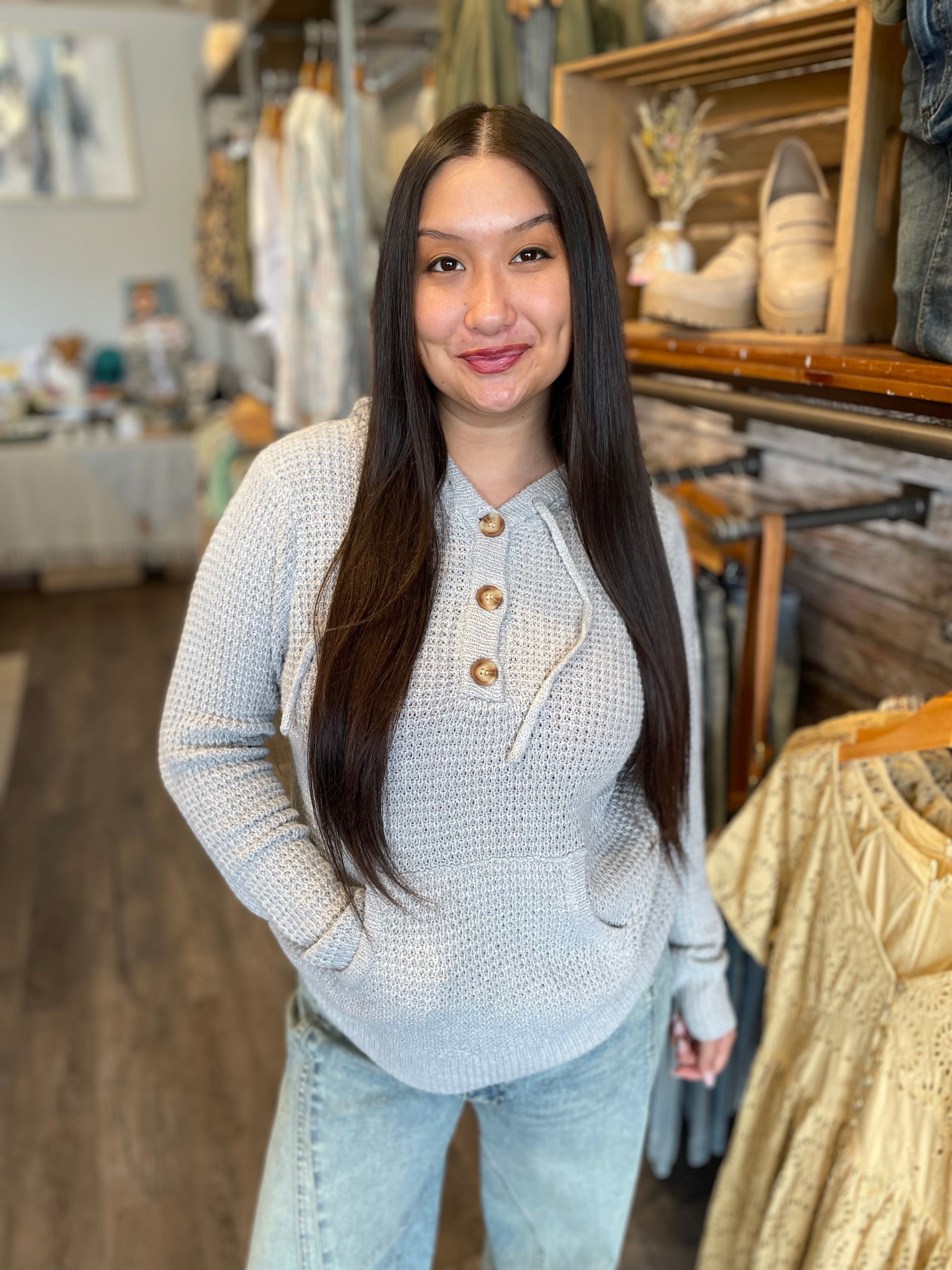 Drawstring Neck Half Button Sweater