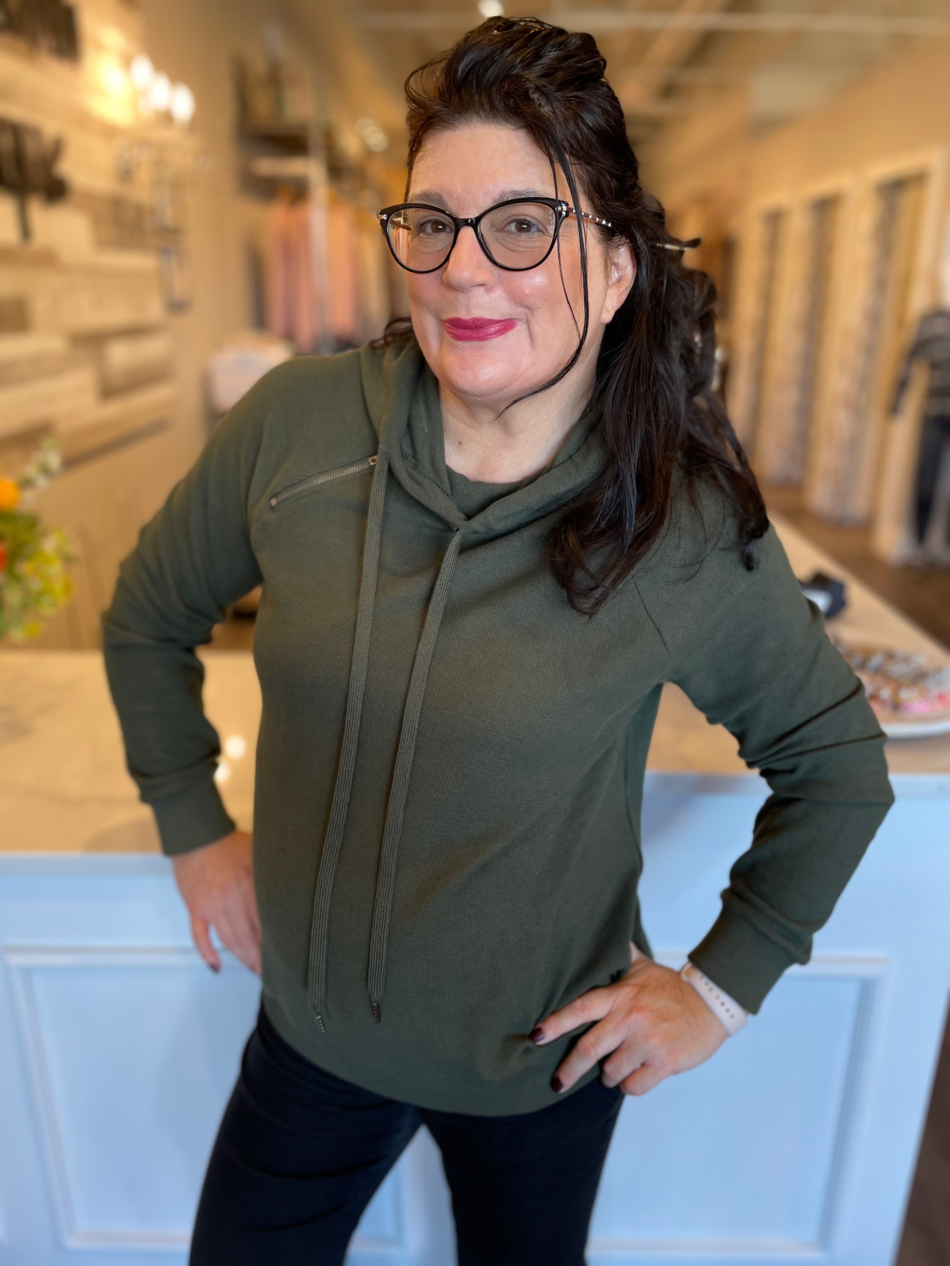 Funnel Neck Top W/Quilt Yoke