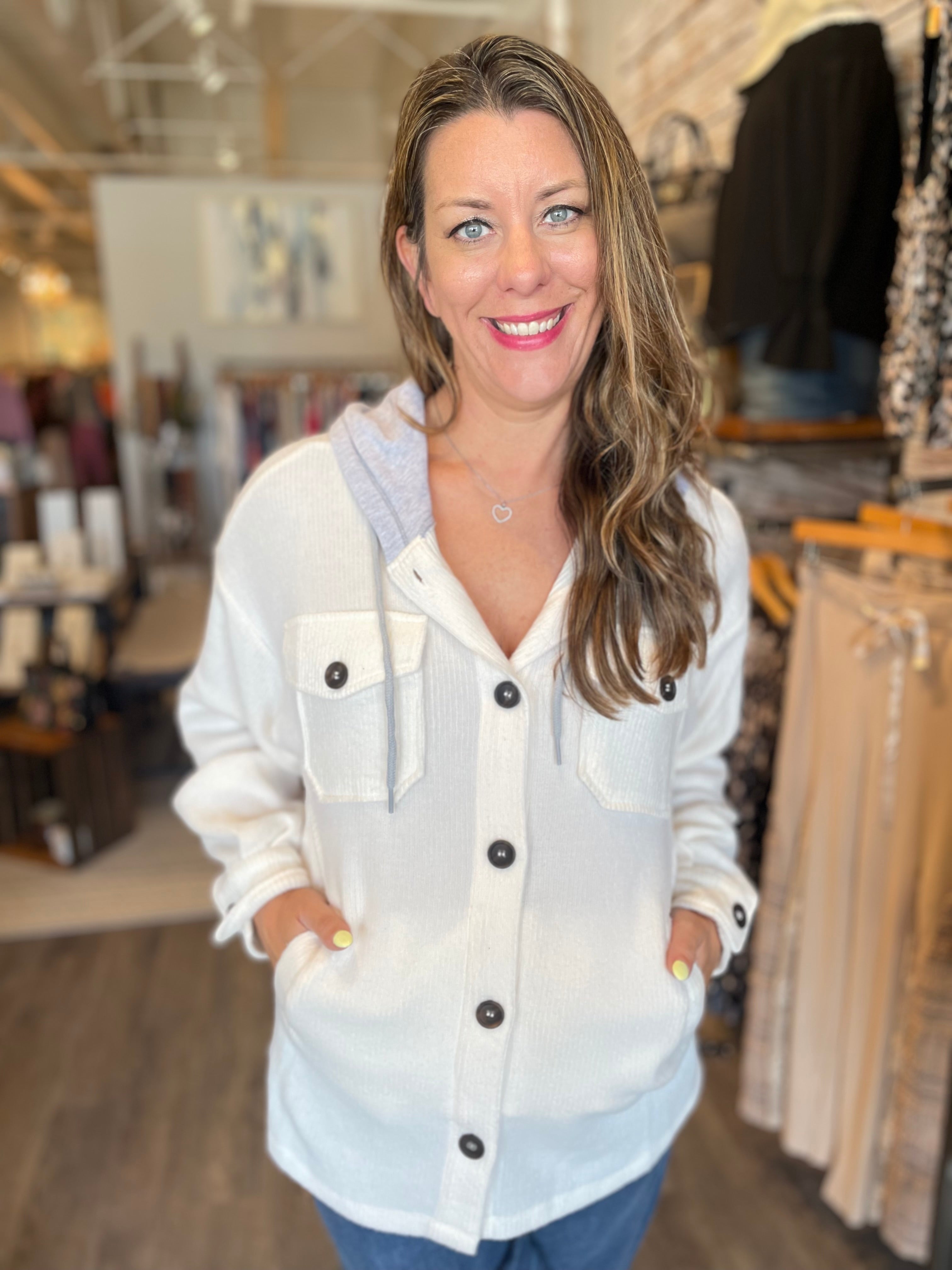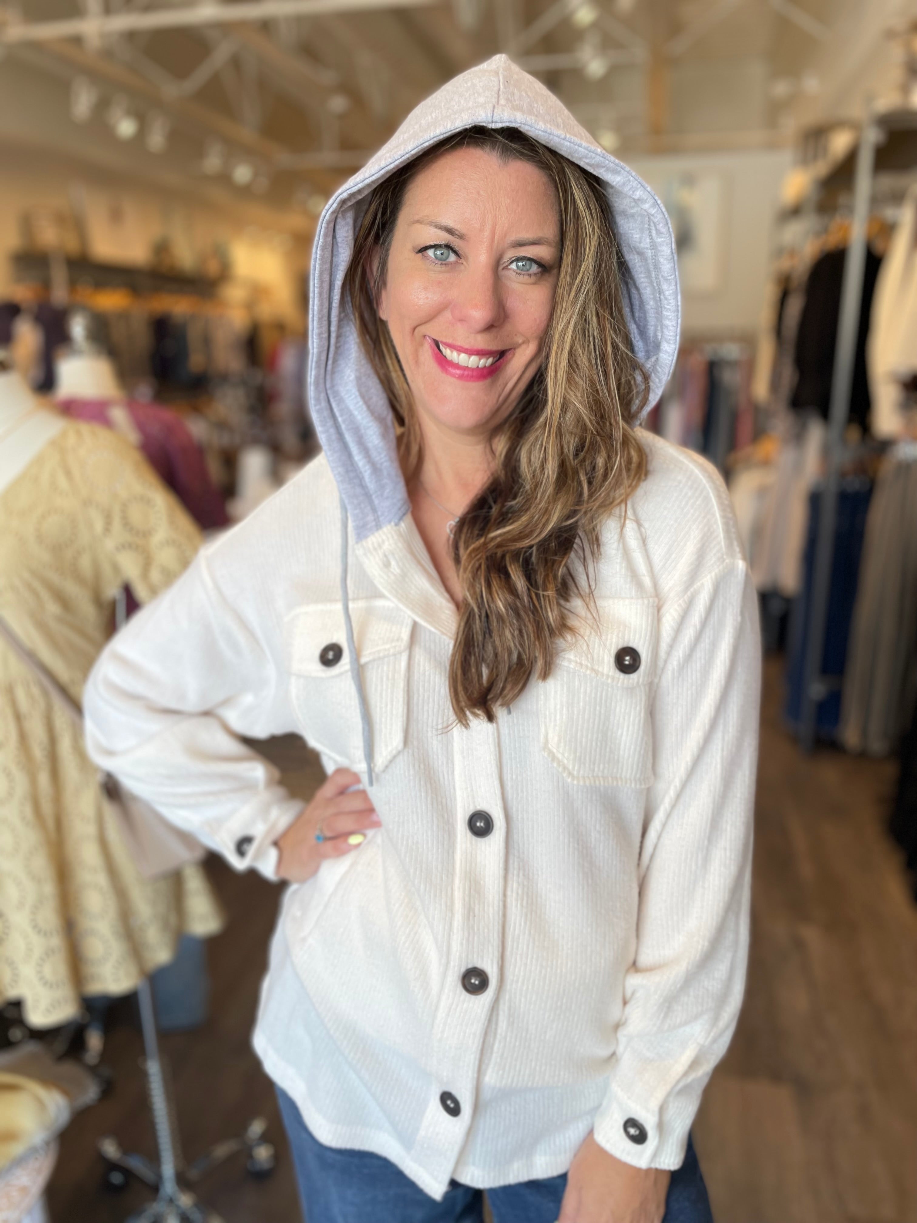 Brushed Rib Hoodie Button Down