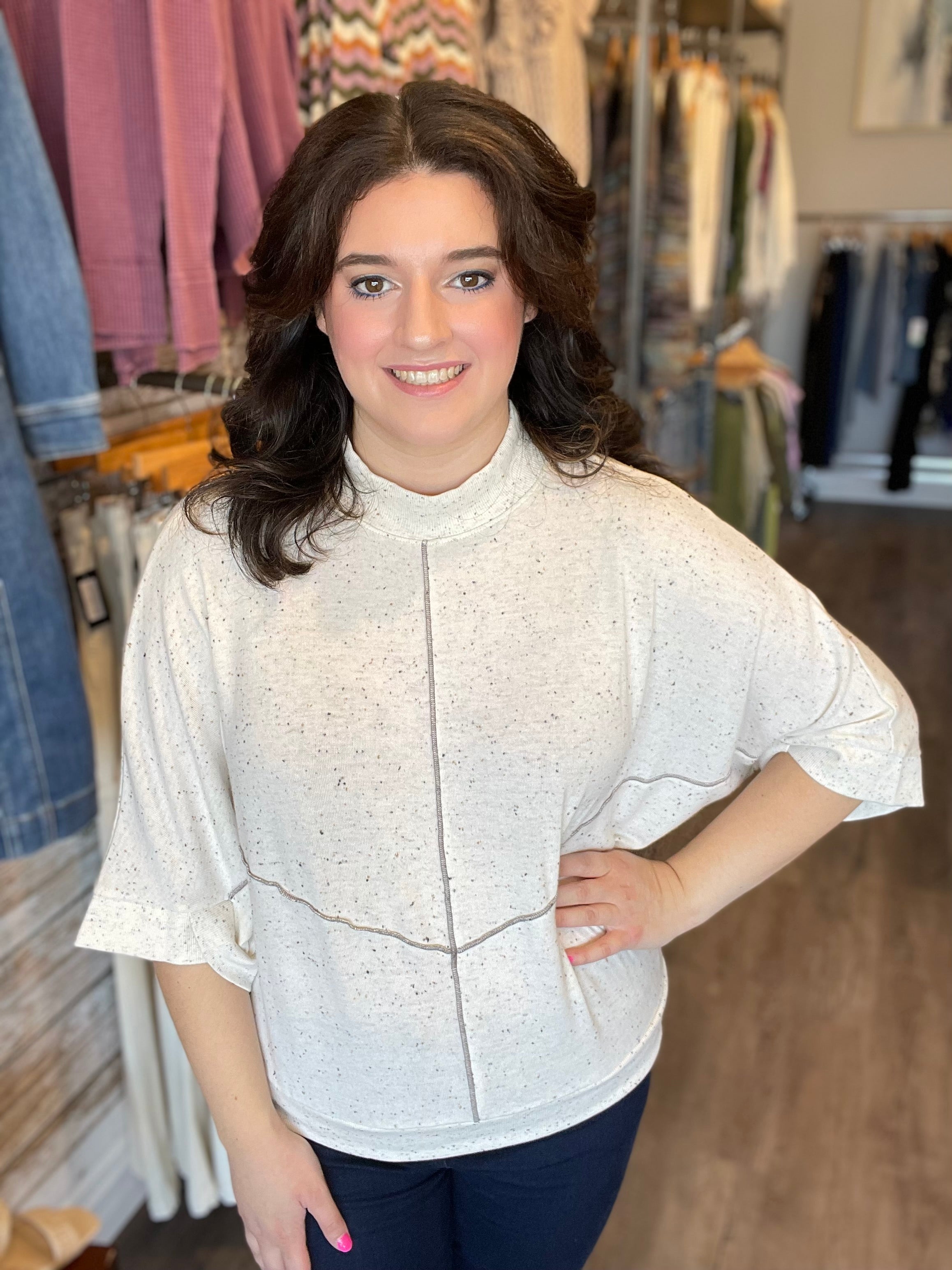 Dolman Sleeve Mock Neck Knit Top w/ Seaming Detail - HQ