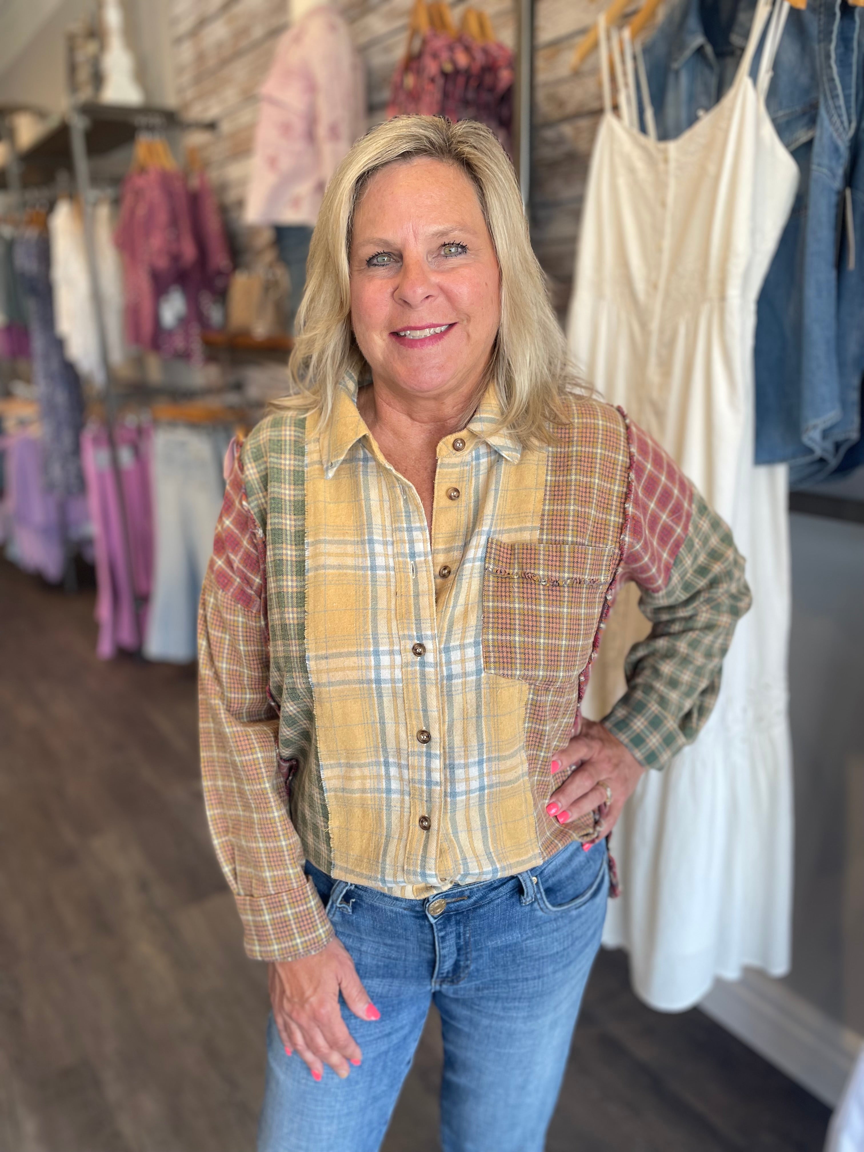 Mixed Plaid Oversized Button Down