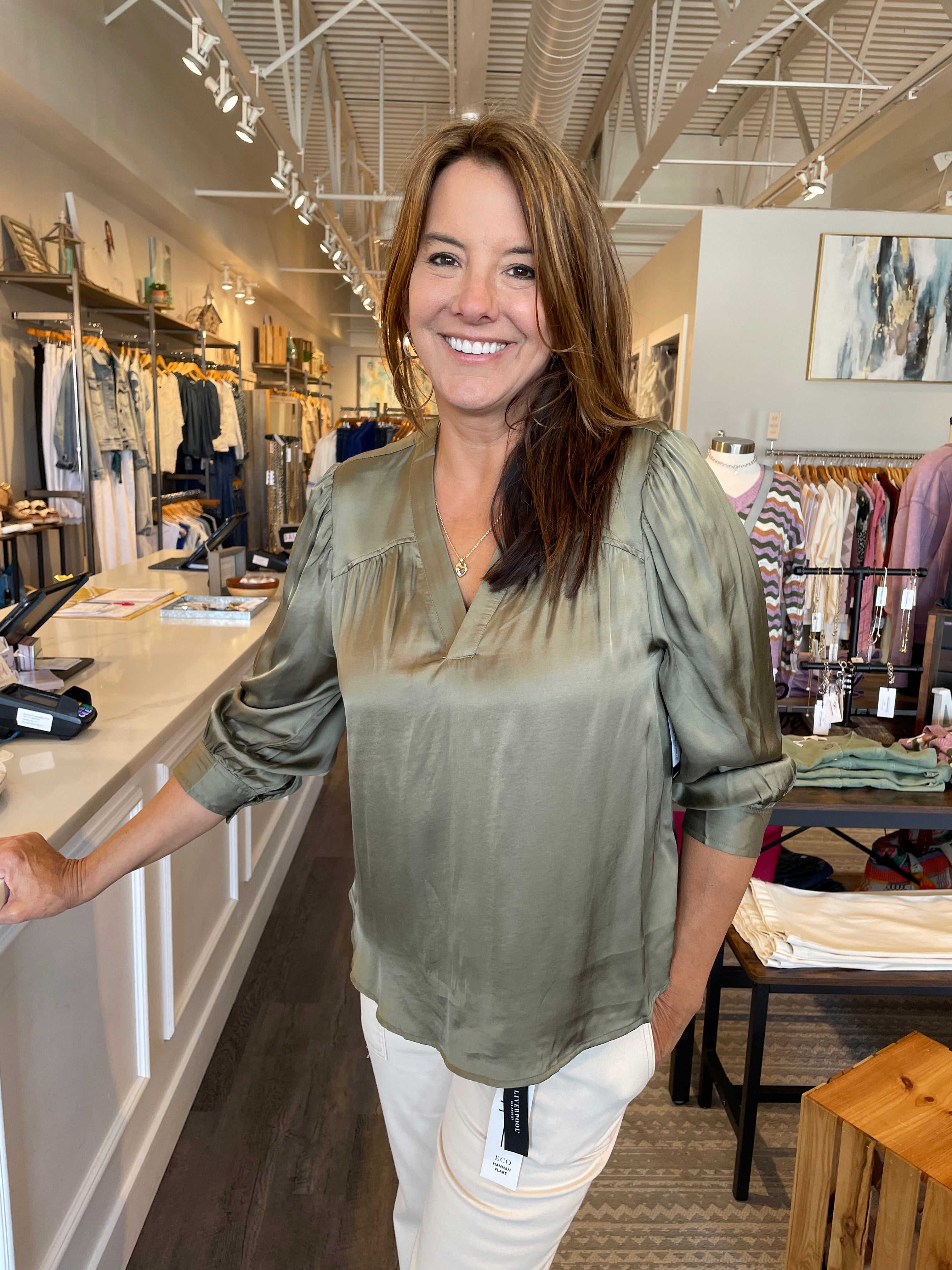Introducing the epitome of timeless elegance! Crafted from luxurious satin fabric and adorned with delicate pleats, this blouse is a celebration of sophistication and refinement. The satin fabric drapes effortlessly, creating a lustrous sheen that catches the light with every movement. The pleats lend a touch of feminine charm, elevating the blouse from simple to stunning. Whether worn alone or layered under a blazer or coatigan, it exudes sophistication and polish. 25" Front body length. Viscose satin. Relaxed fit. Pleated neck detail. V-neck. Shirring in front and back. Cuffed sleeves. Viscose.