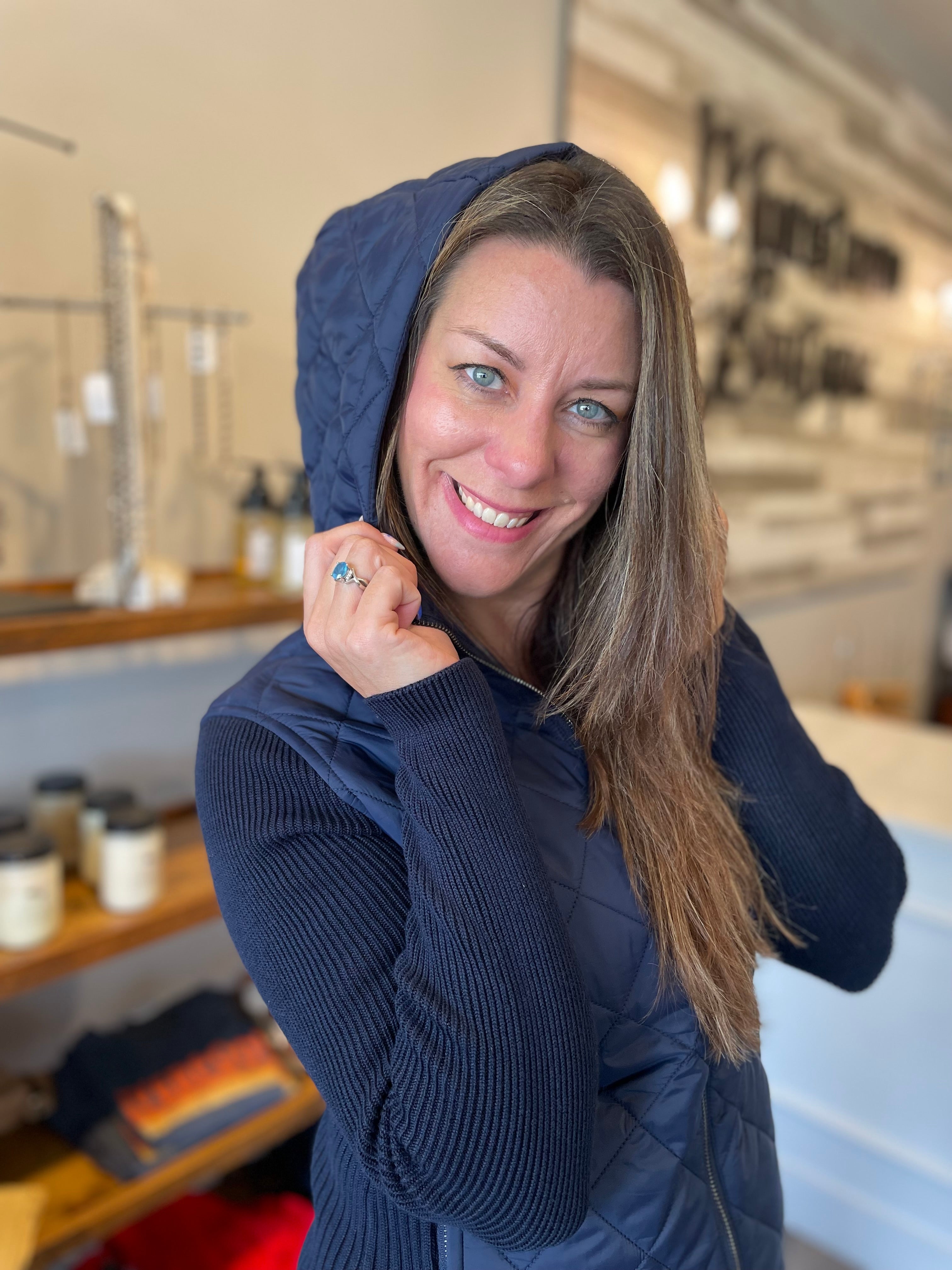 Quilted Front Zip Up Hooded Sweater Jacket - HQ