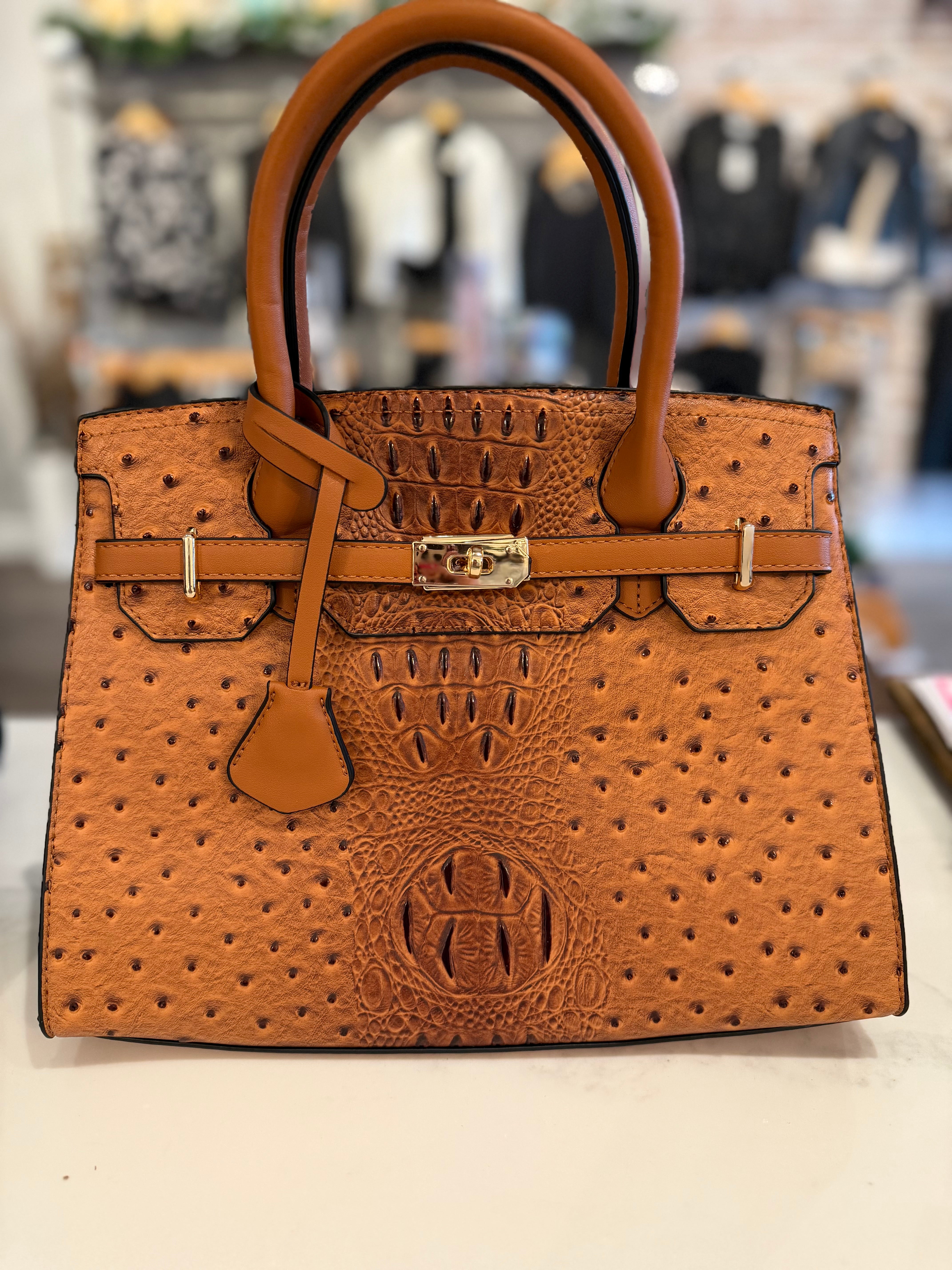 Virginia Ostrich Embossed Satchel